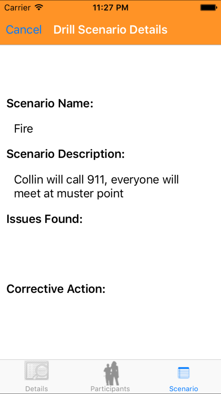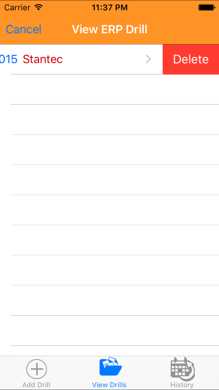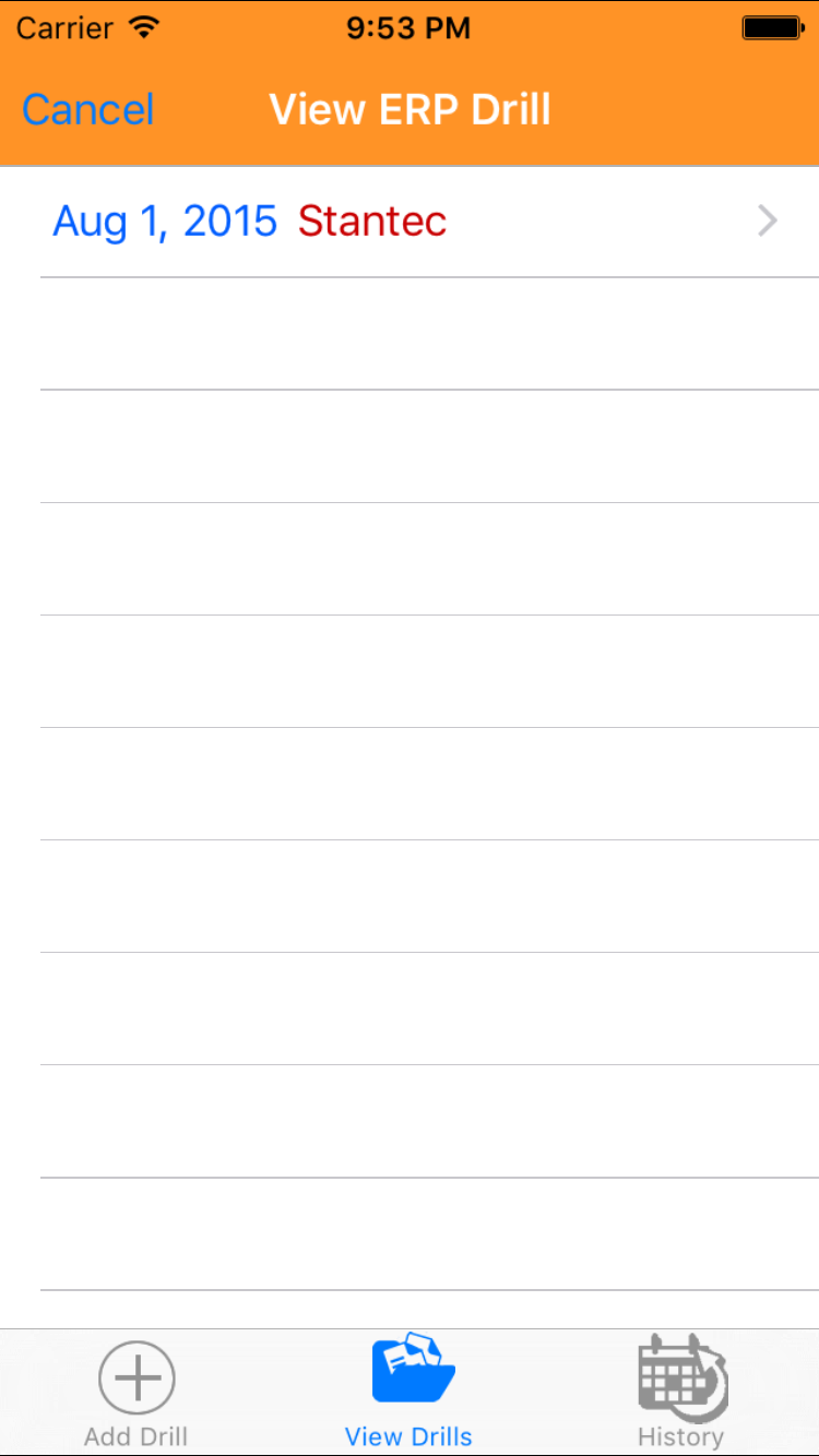 - Tap the third tab, the drill scenario tab of the History view. This loads with the drill scenarios of the Emergency Response Plan Drill.