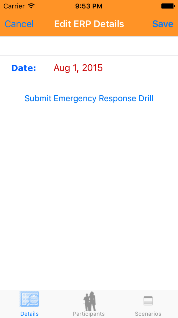 - Return to the Edit Emergency Response Plan Drill screen by either tapping Save in the top right corner to select the highlighted date or tapping Cancel in the top left corner to leave the Date: field unchanged.