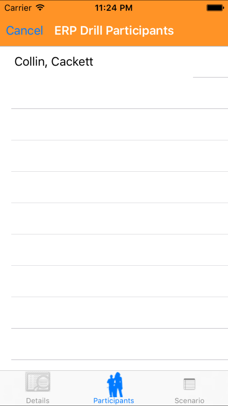 - Tap the second tab on the menu, the Emergency Response Plan Drill view.