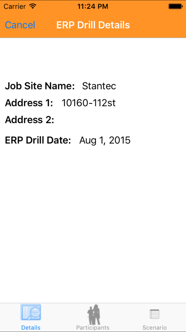 - Tap on the Emergency Response Plan Drill you would like to view. This loads the emergency response plan drill edit screen.