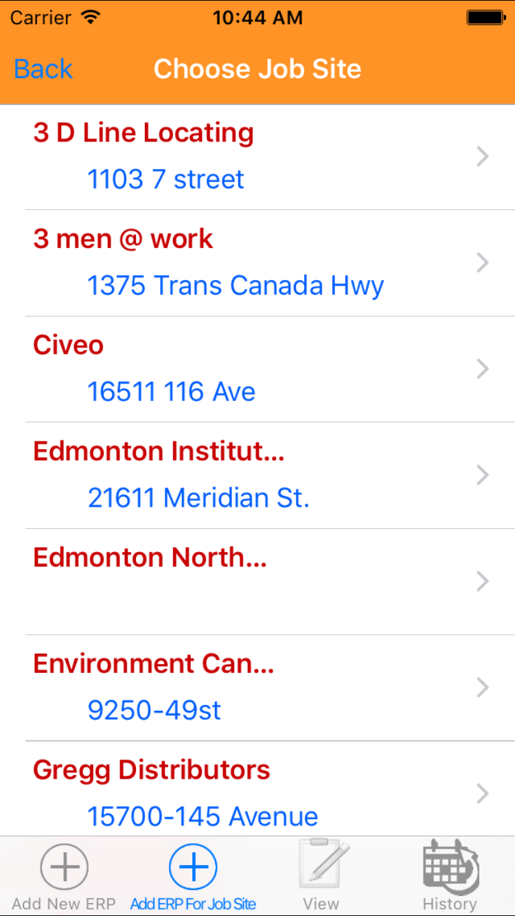 - Return to the Add Emergency Response Plan screen by either tapping the appropriate job site or tapping Cancel in the top left corner to leave the job site field unchanged.