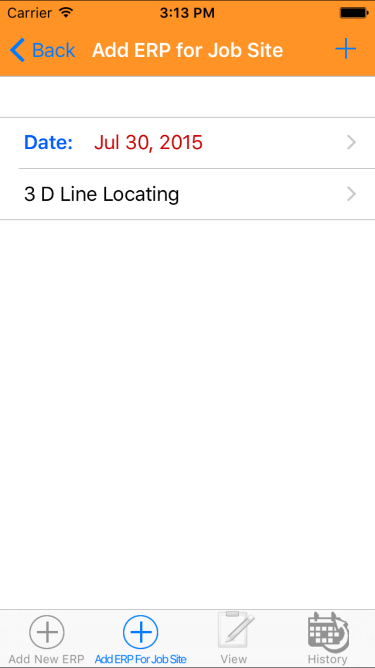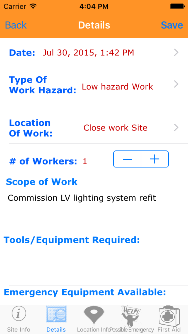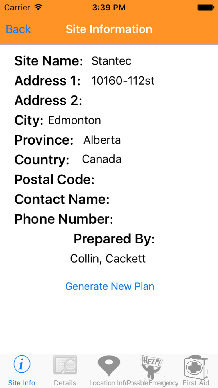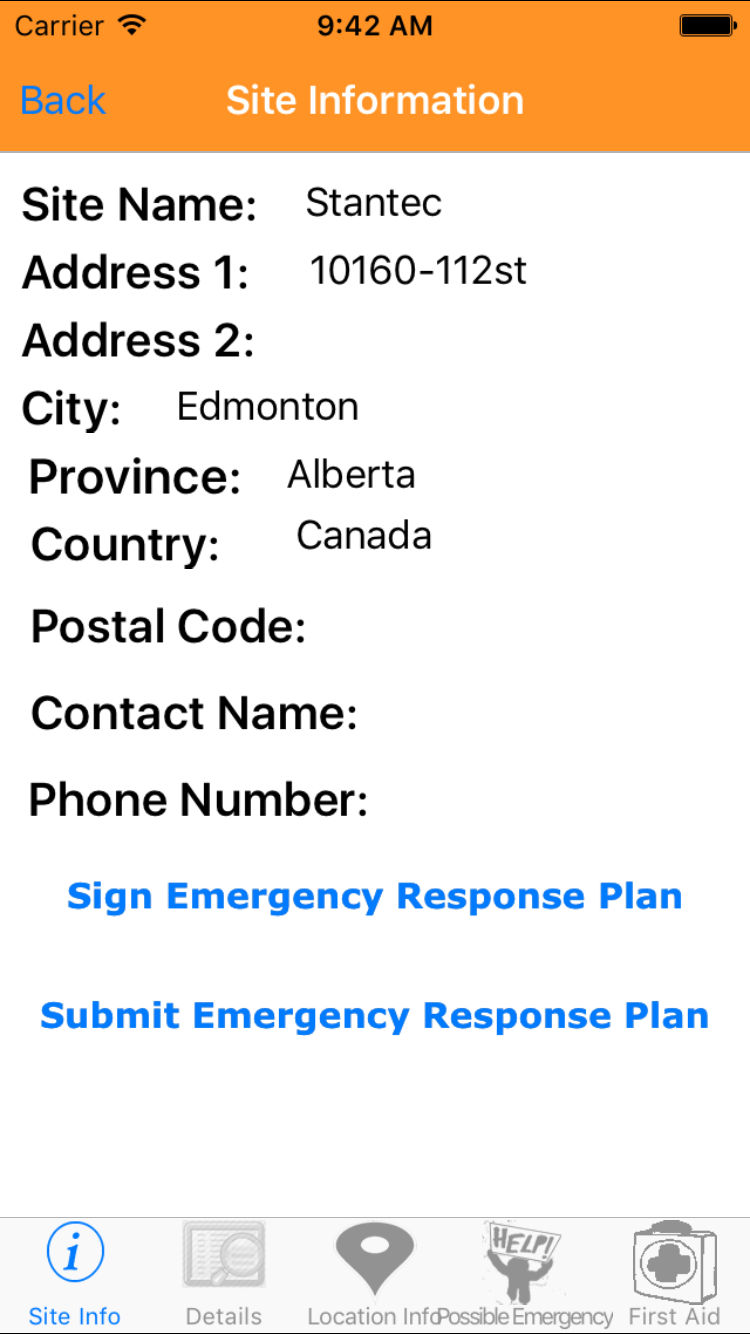 - Then tap on the second tab on the bottom of the screen, this opens the Add Emergency Response Plan For Job Site entry screen.