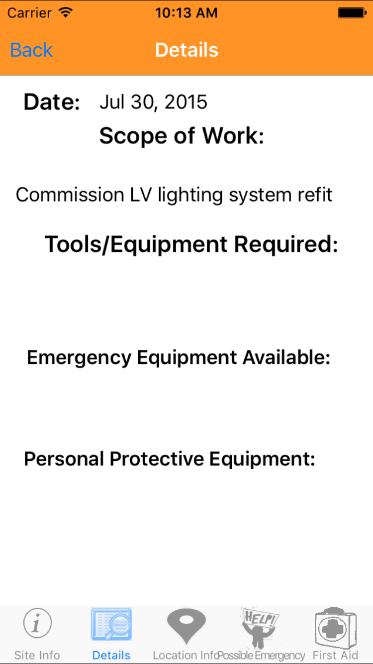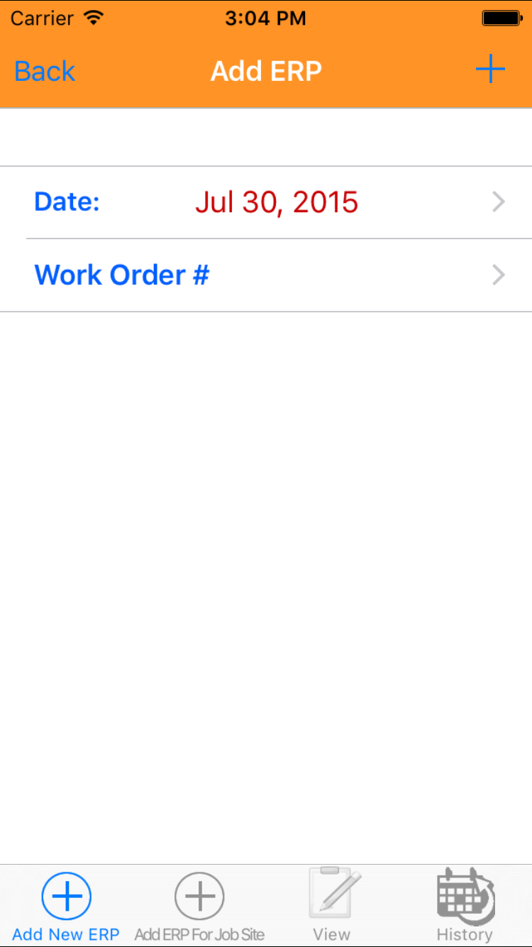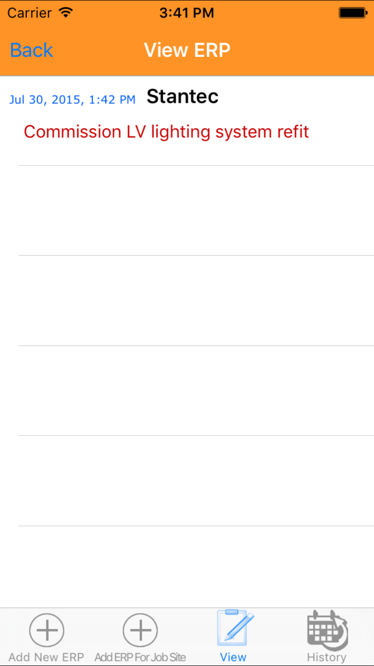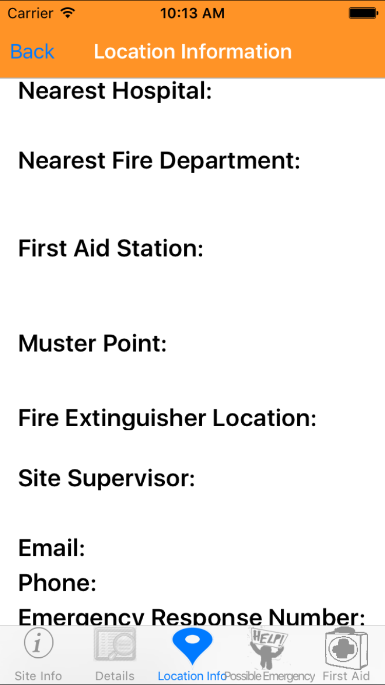 - Then tap on the second tab on the bottom of the screen, this opens the Add Emergency Response Plan For Job Site entry screen.