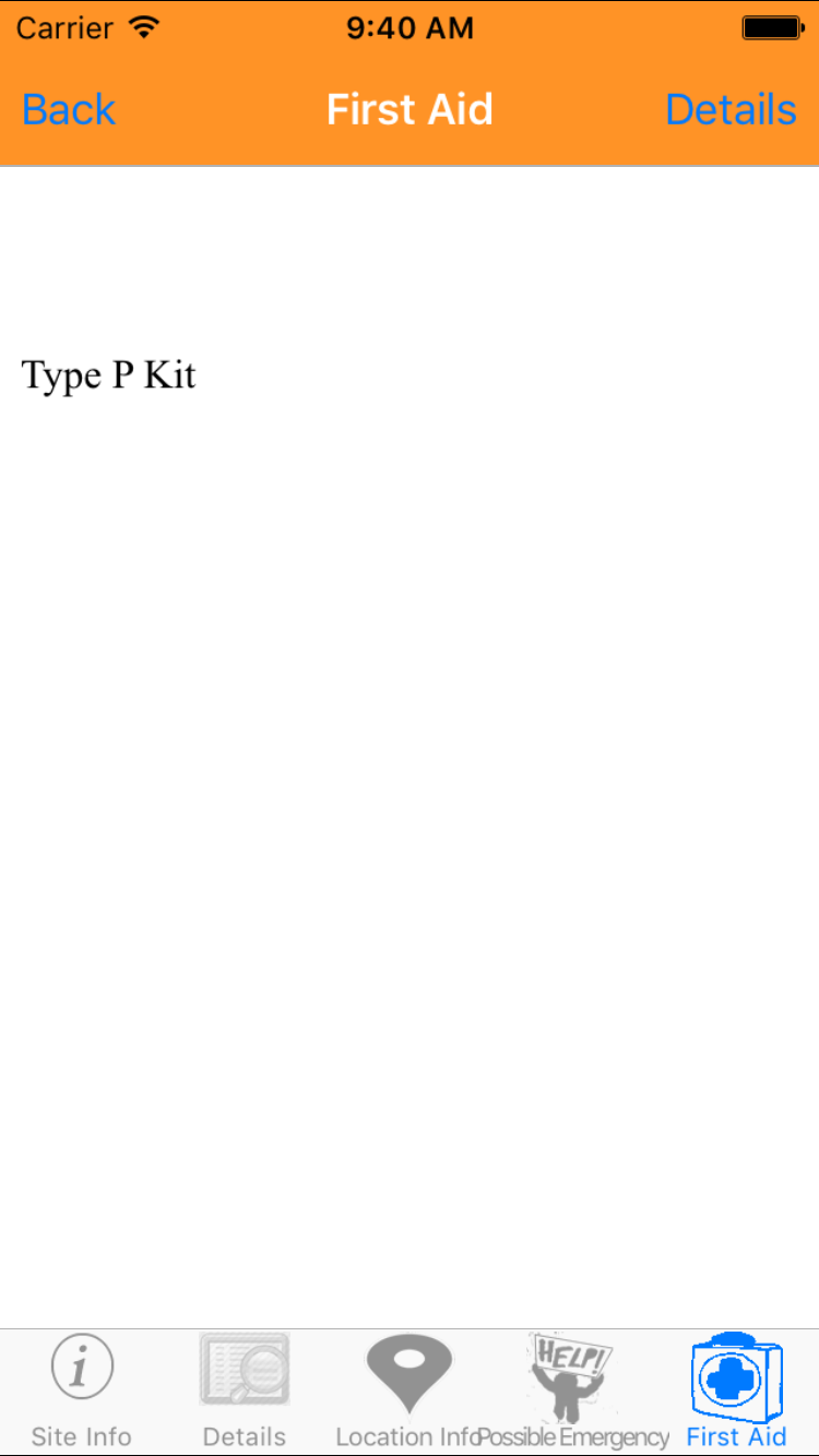- Tap on the Details button in the top right corner, this loads the next screen with first aid kit requirements.