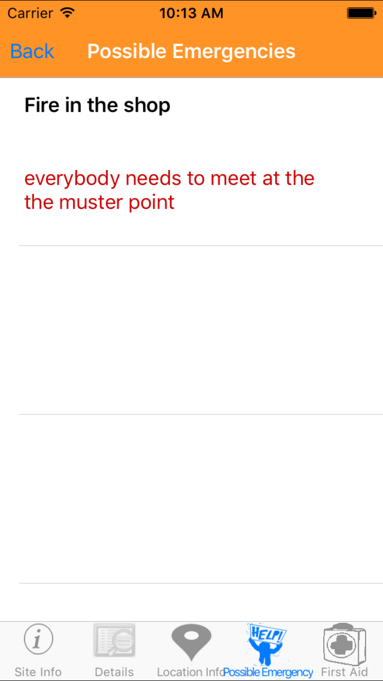 - Tap the fourth tab, the possible emergency tab of the History view. This loads with the possible emergencies of the Emergency Response Plan.