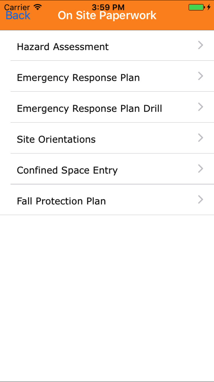 - From the Main Menu screen, tap the On Site Paperwork button.