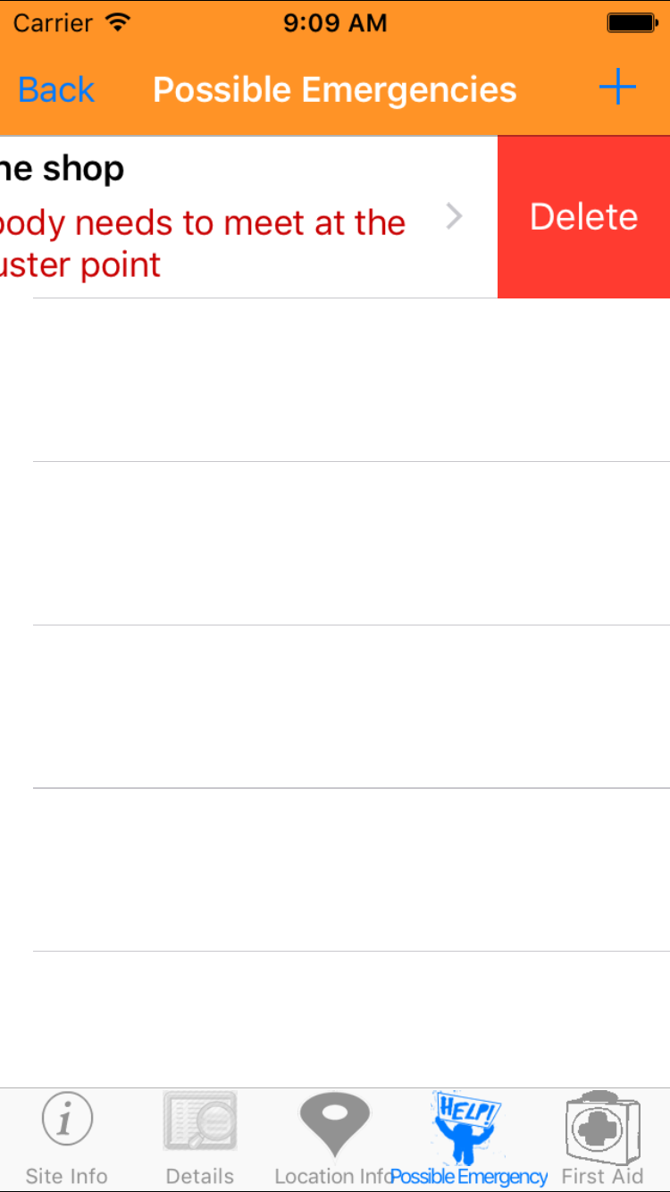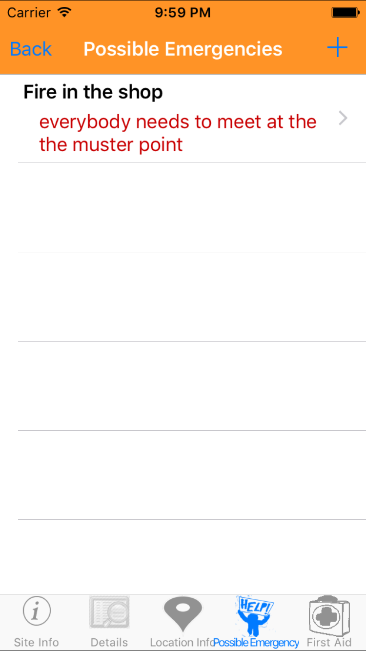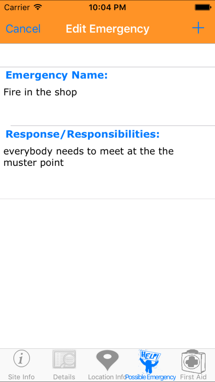 - Tap the + icon in the top right corner to open the Add Possible Emergency screen.