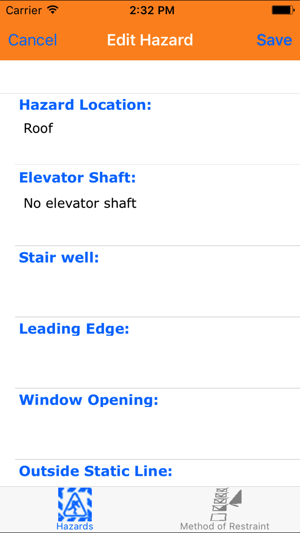 - Tap Save in the top right corner of the screen to save the hazard details