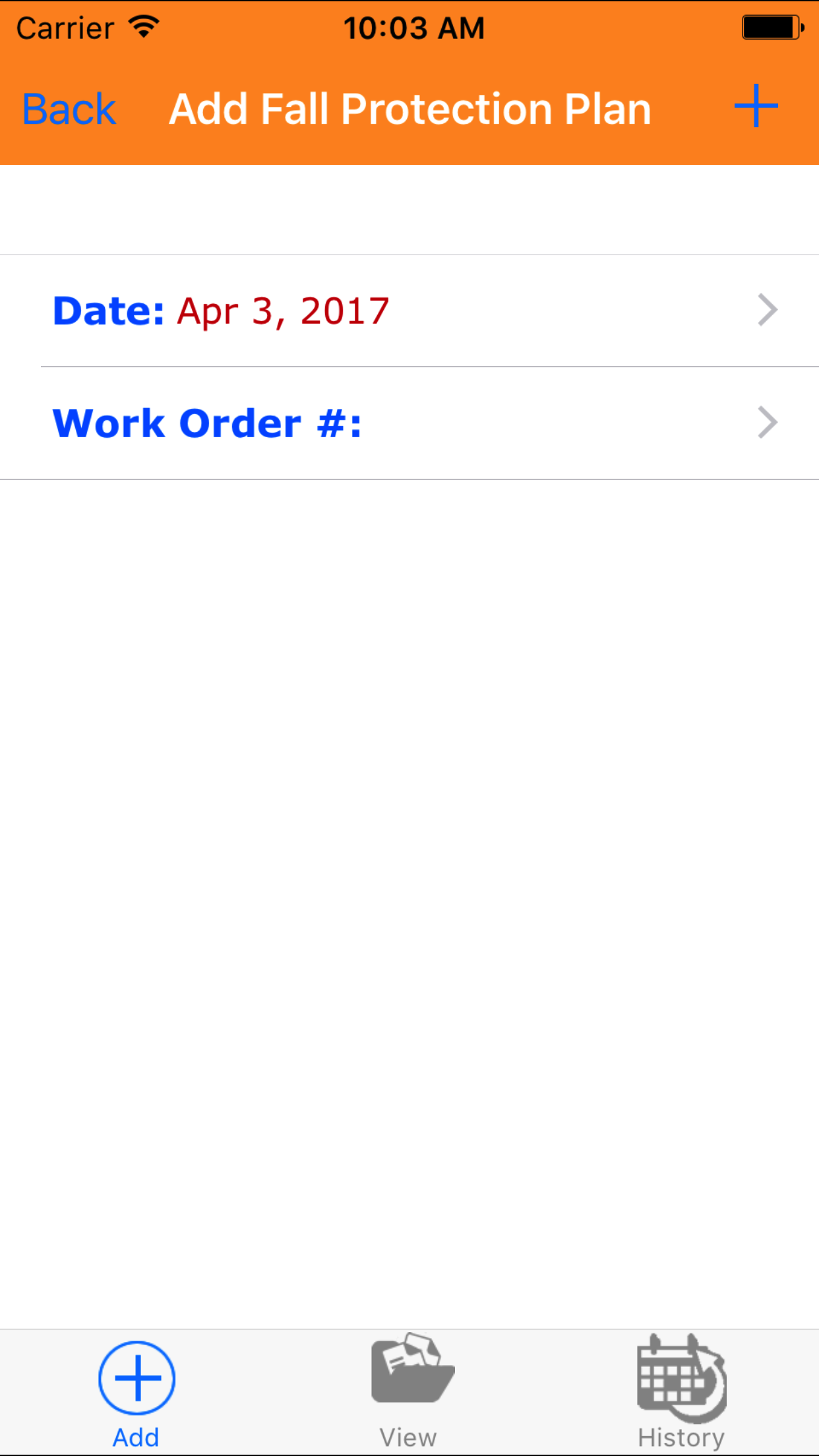 - Tap the + icon in the top right corner to add the Fall Protection Plan.