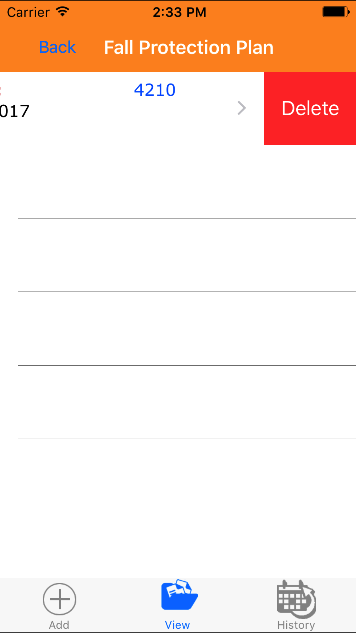 - Swipe from the right edge to the left to bring up the delete button for the fall protection plan.