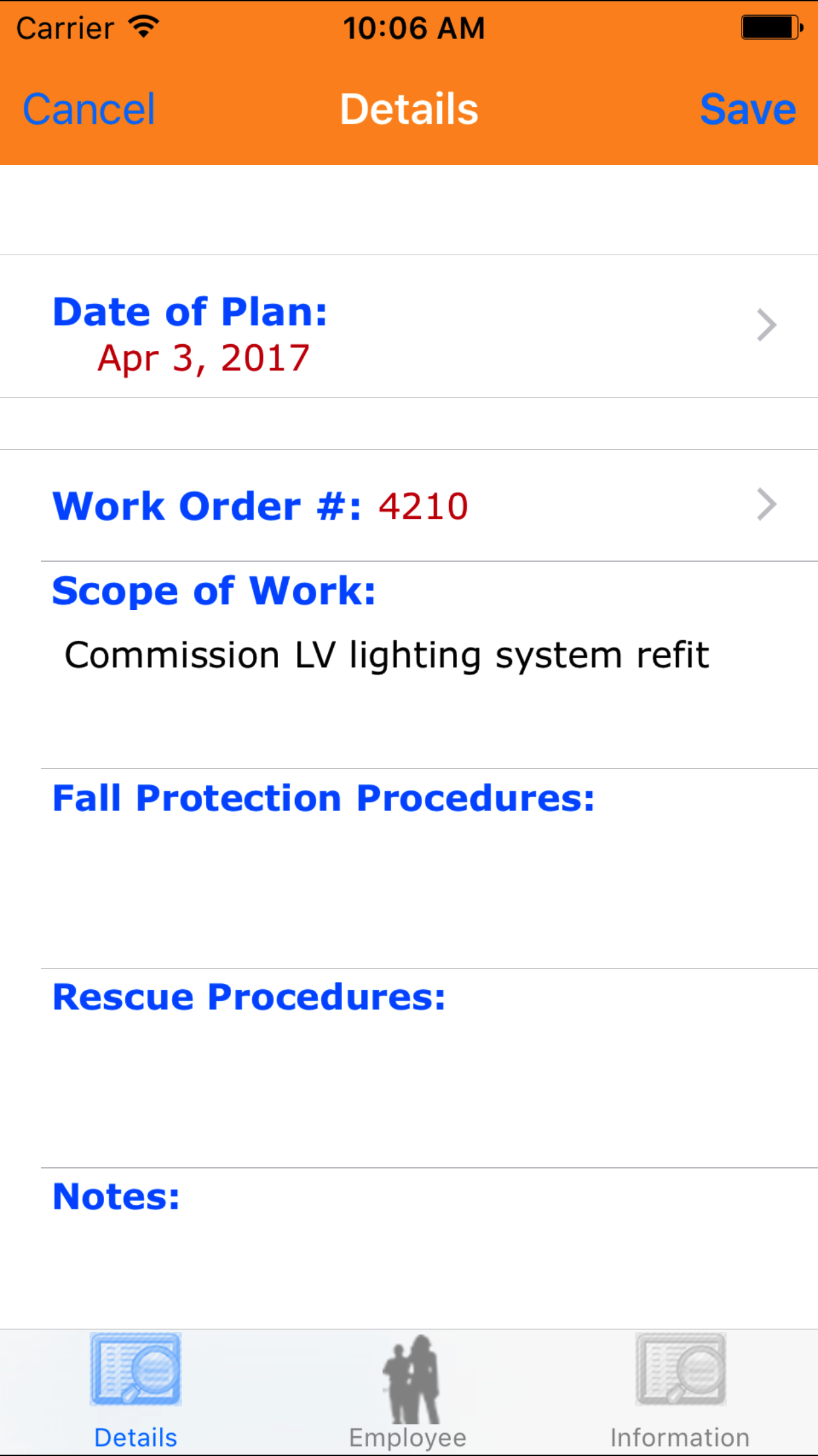 - Tap Save in the top right corner to save any changes to the Fall Protection Plan Details.