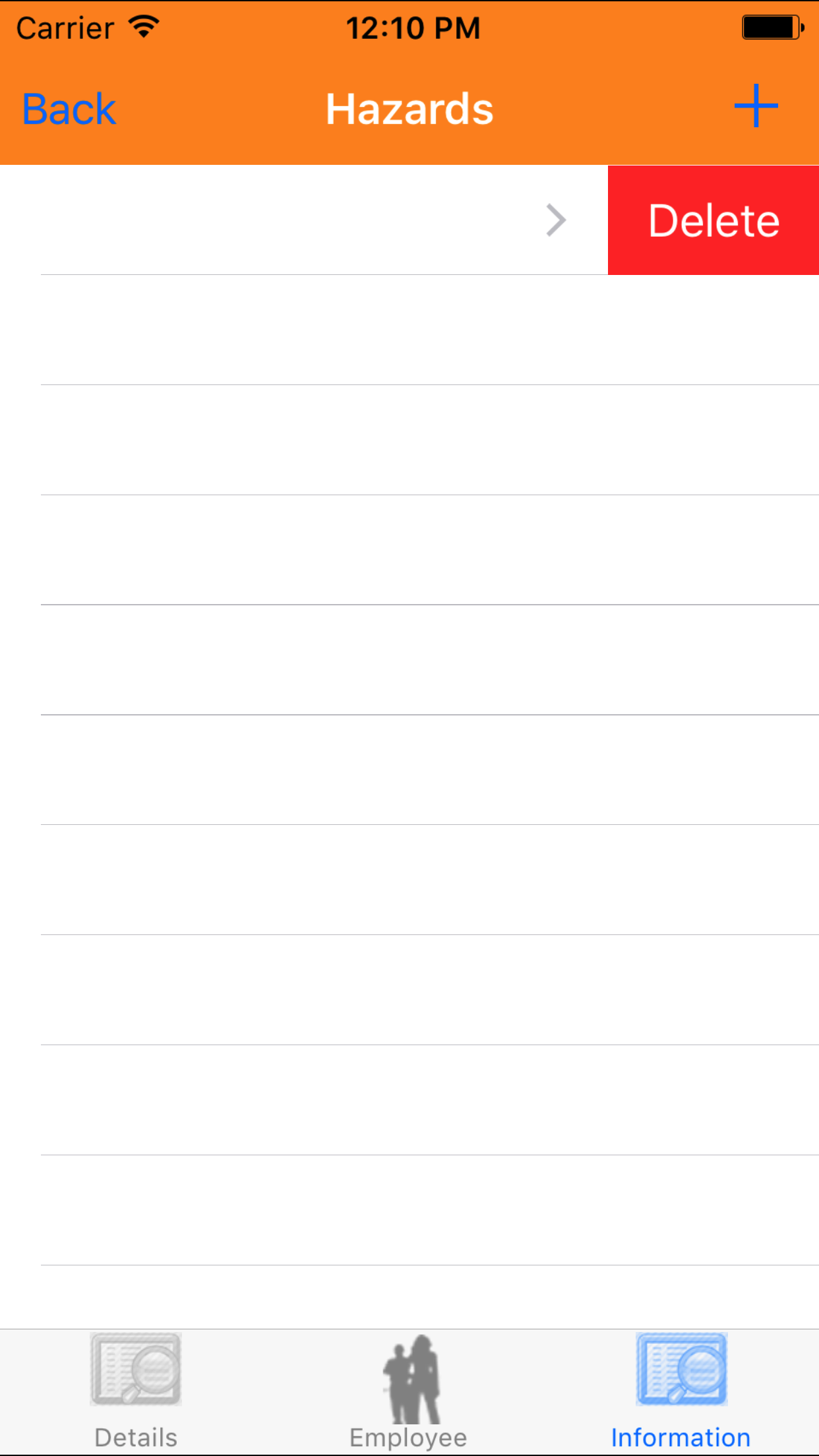 - Swipe from the right edge to the left to bring up the delete button for the hazard.