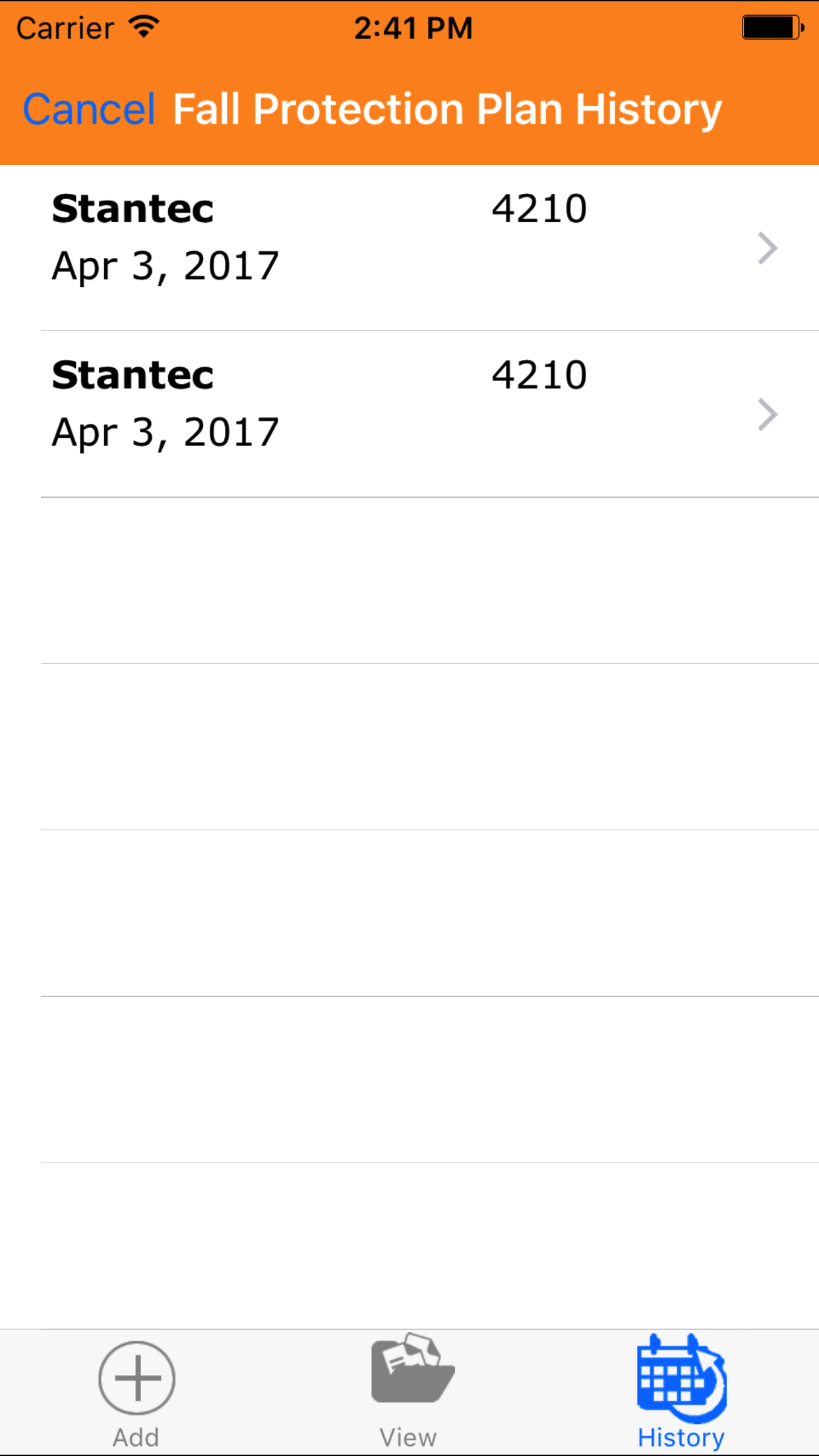 After Fall Protection Plans have been closed out, they will be available to look at through the History view on the iPhone Application.