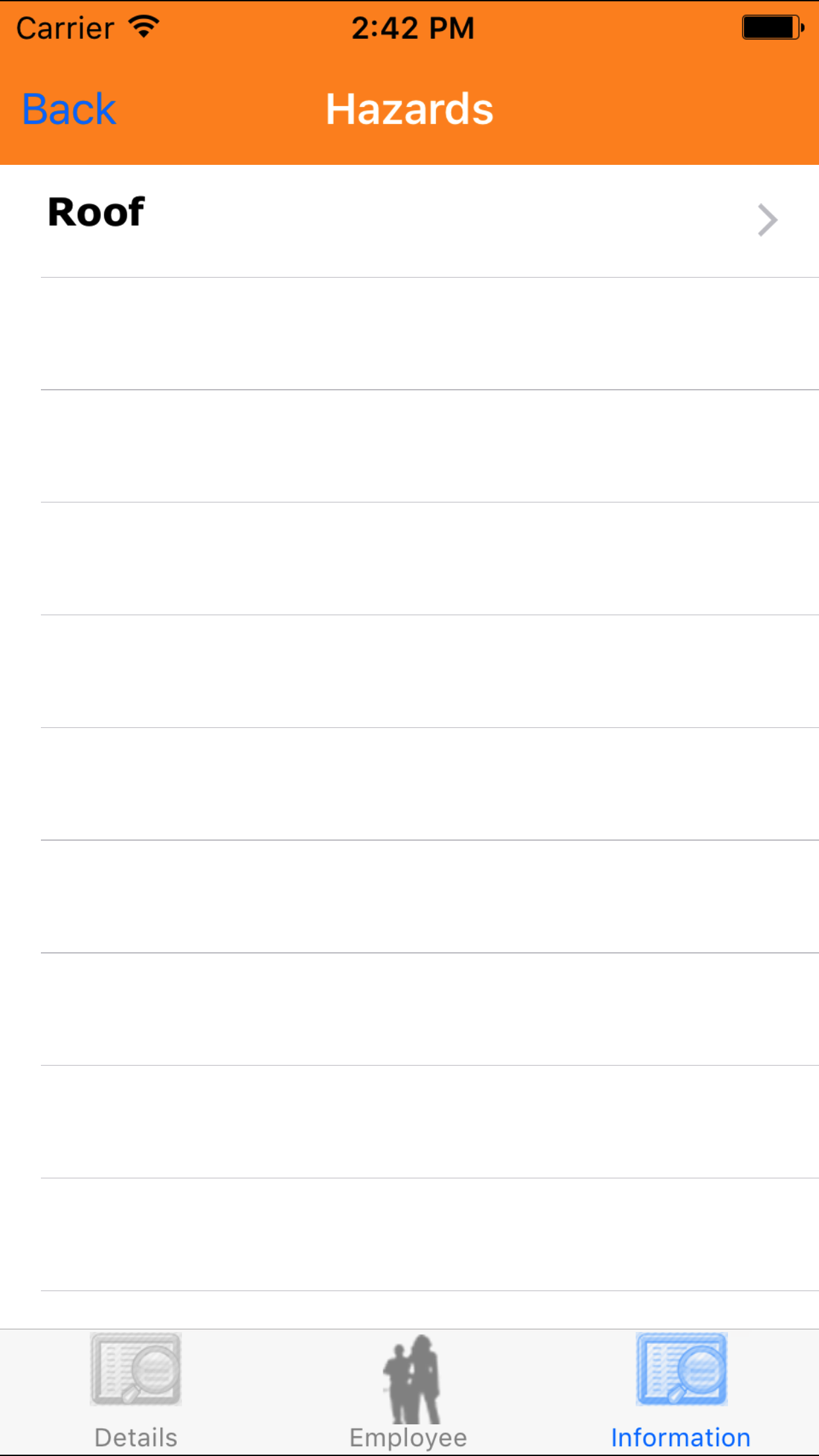 - Tap the Hazards button which loads hazards list.