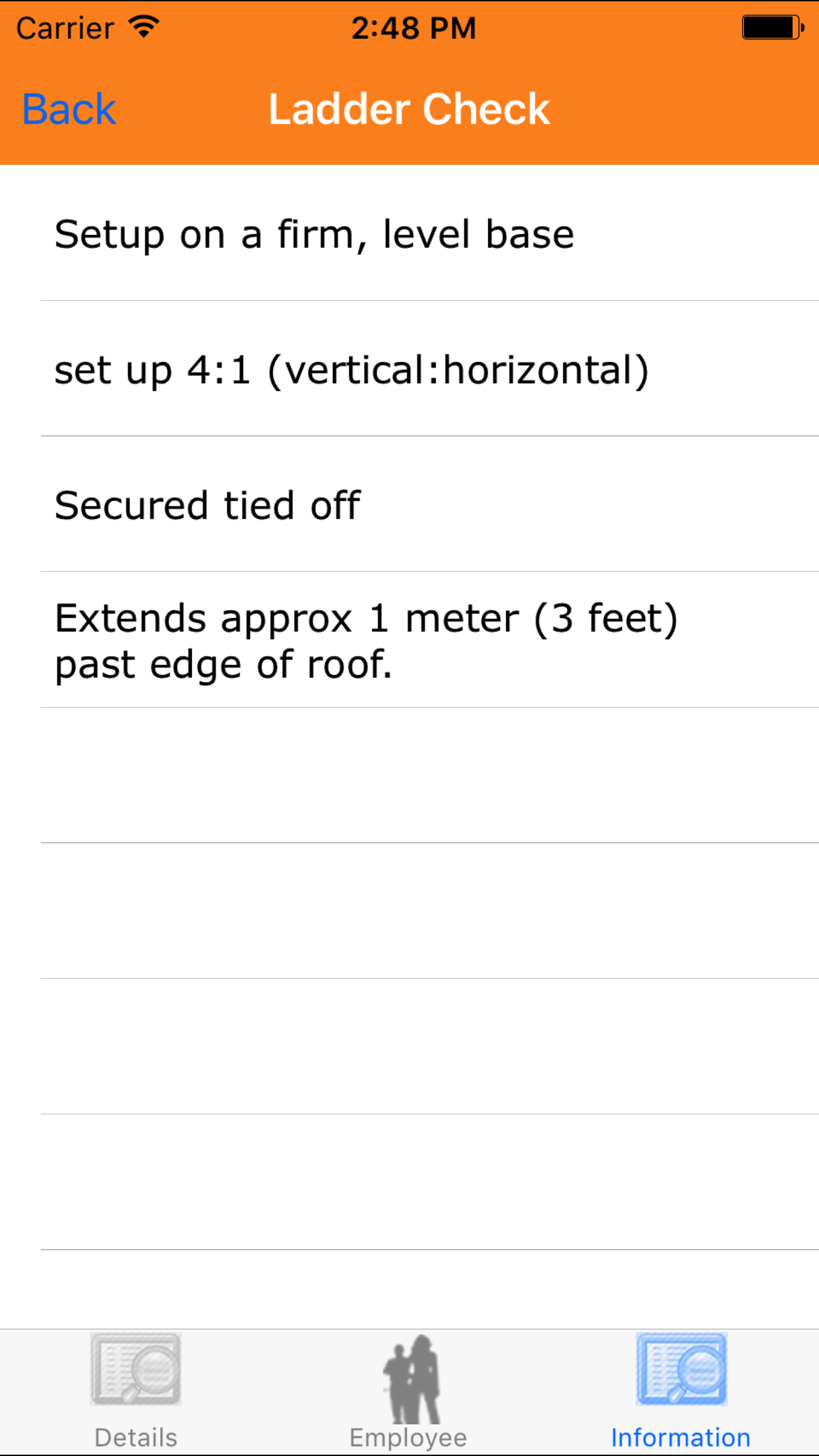 - Tap the Ladder Check button which loads ladder check list.