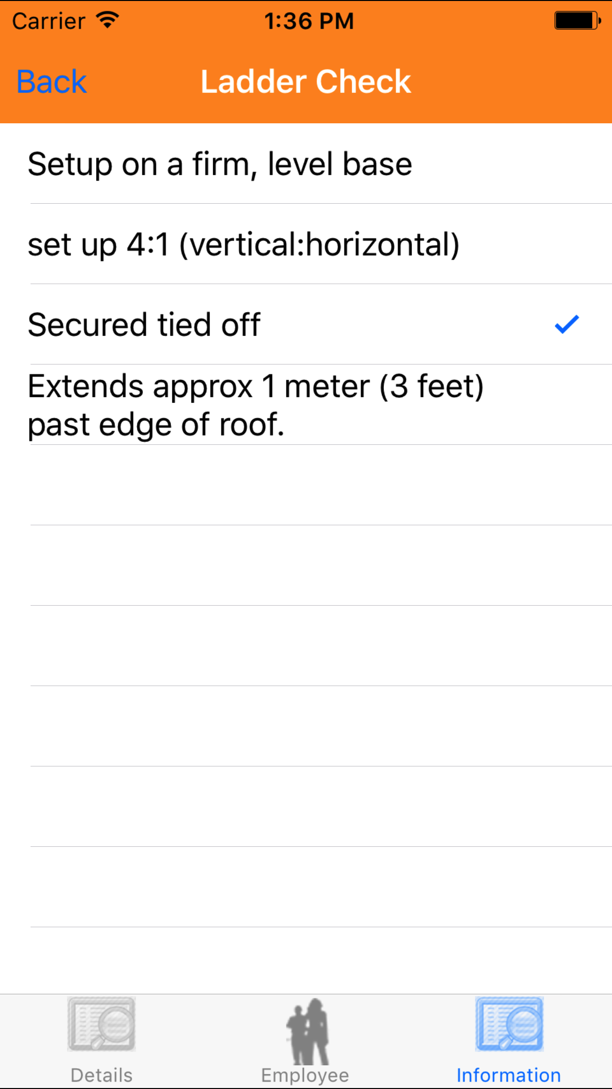 - Tap the ladder check list detail you would mark as being checked