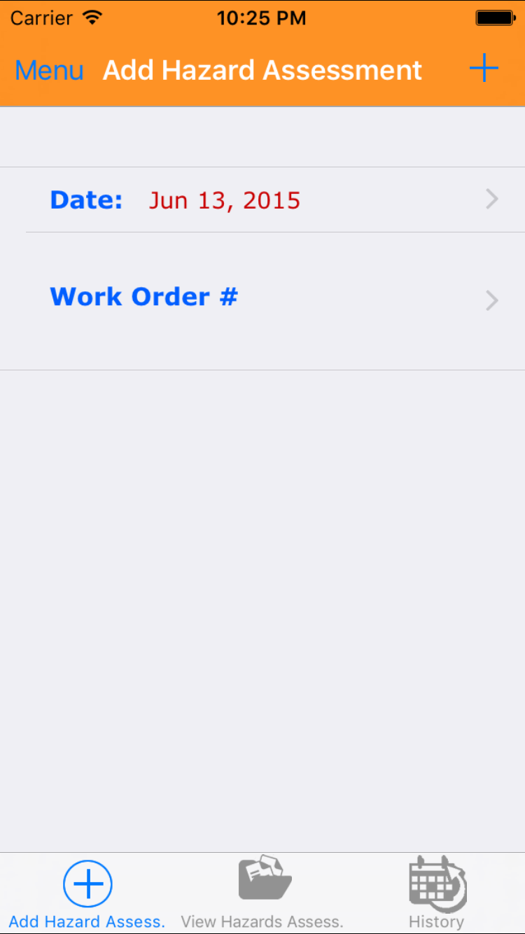 - Tap the + icon in the top right corner to add the Hazard Assessment.