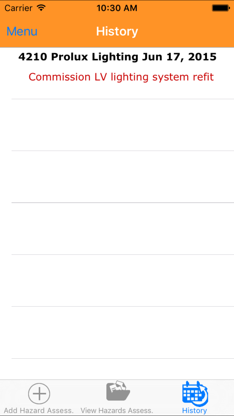 - Tap the third tab on the menu, the History tab of the main menu view. This loads with a list of the closed out Hazard