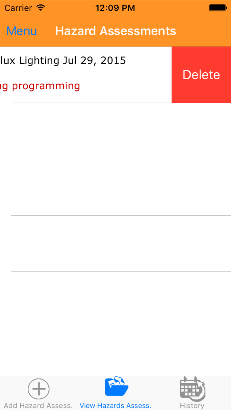 - Swipe from the right edge to the left to bring up the delete button for the hazard assessment.