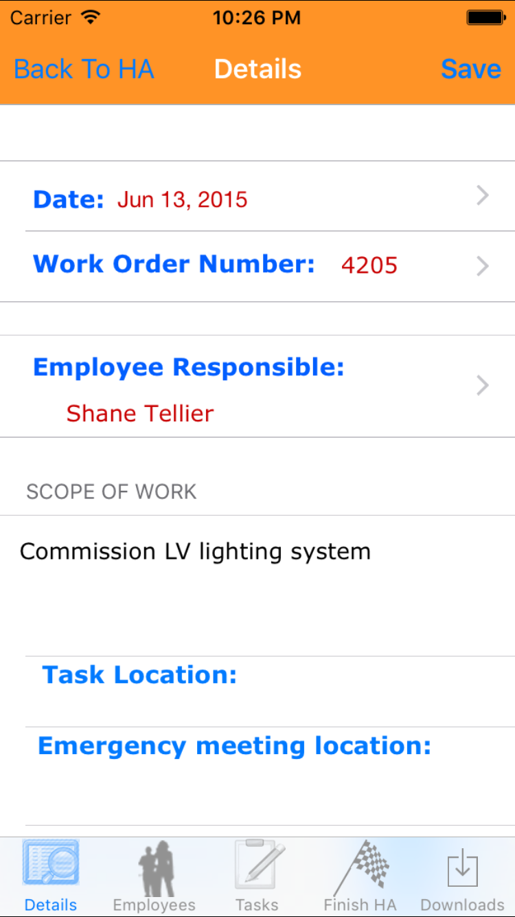 - Employee Responsible: The employee responsible field, allows field staff to assign a employee the responsibility to eliminate the task hazard.