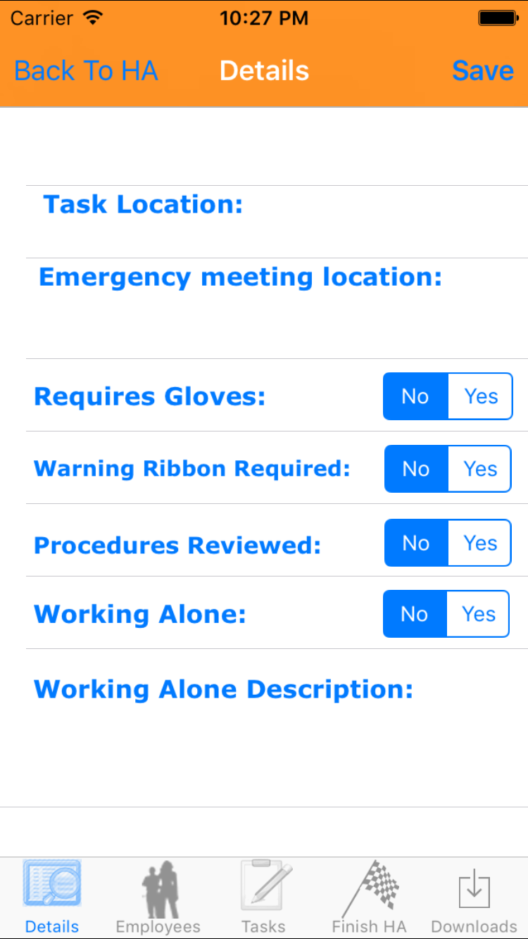 - The Work Type selected help determine what tasks from the company task list will be added the hazard assessment.