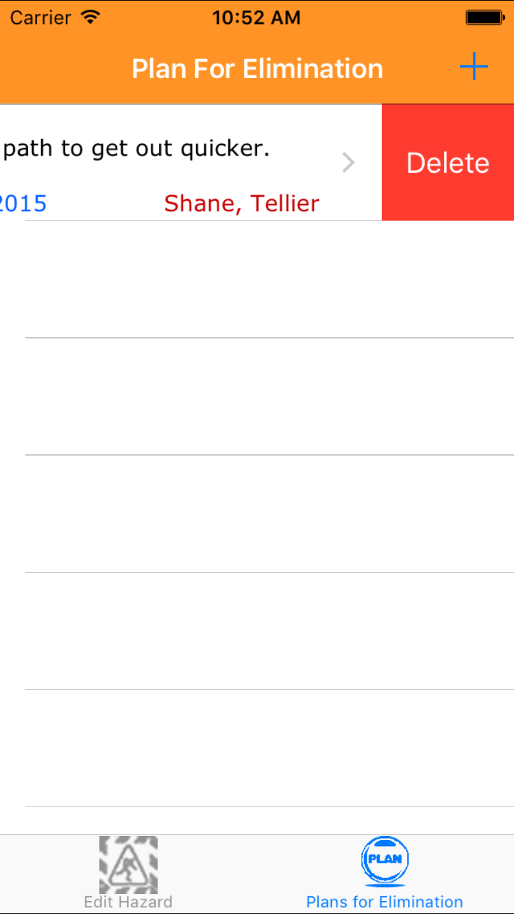 - Tap the Delete button. The plan for elimination will be deleted from the hazard assessment.