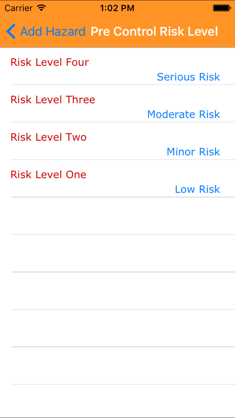 - Tap the hazard control type field, to open the Hazard Control Type screen.