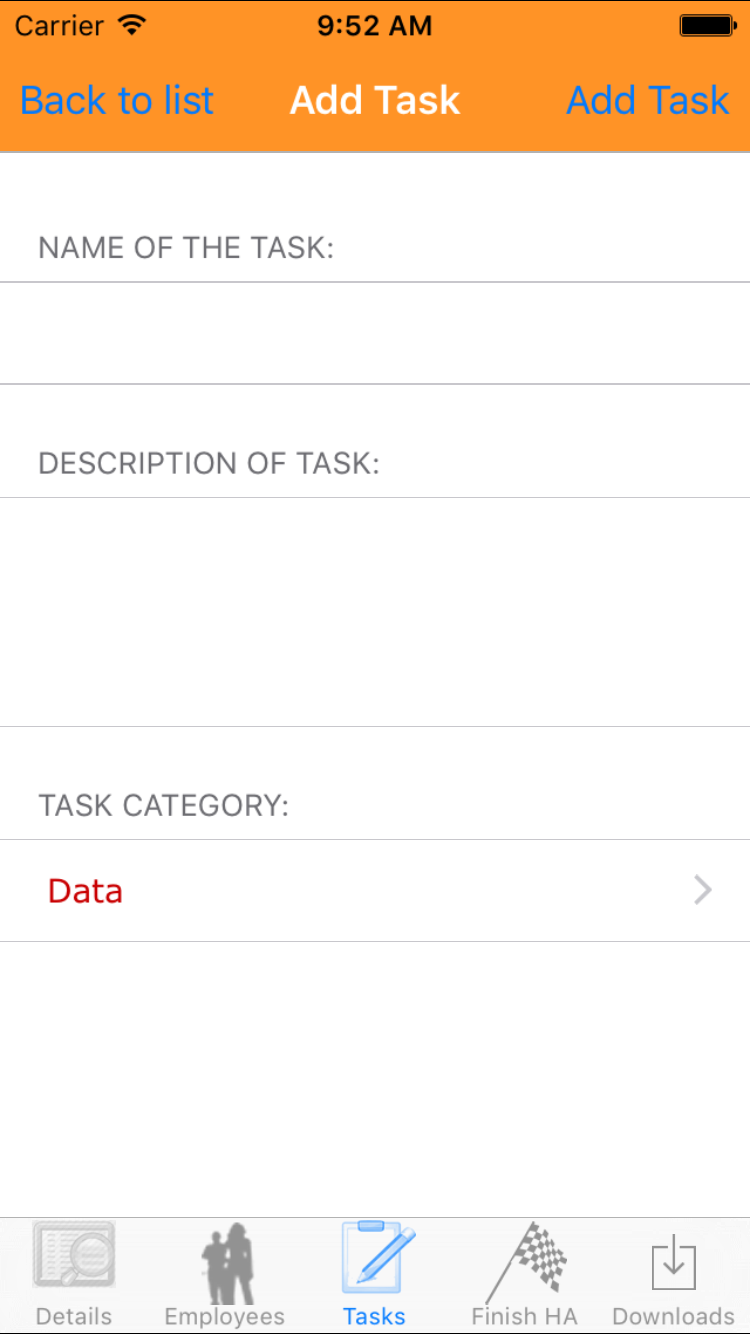 - Tap the third tab, the Tasks tab of the History view. This loads the list of the Tasks that were added for the Hazard Assessment,