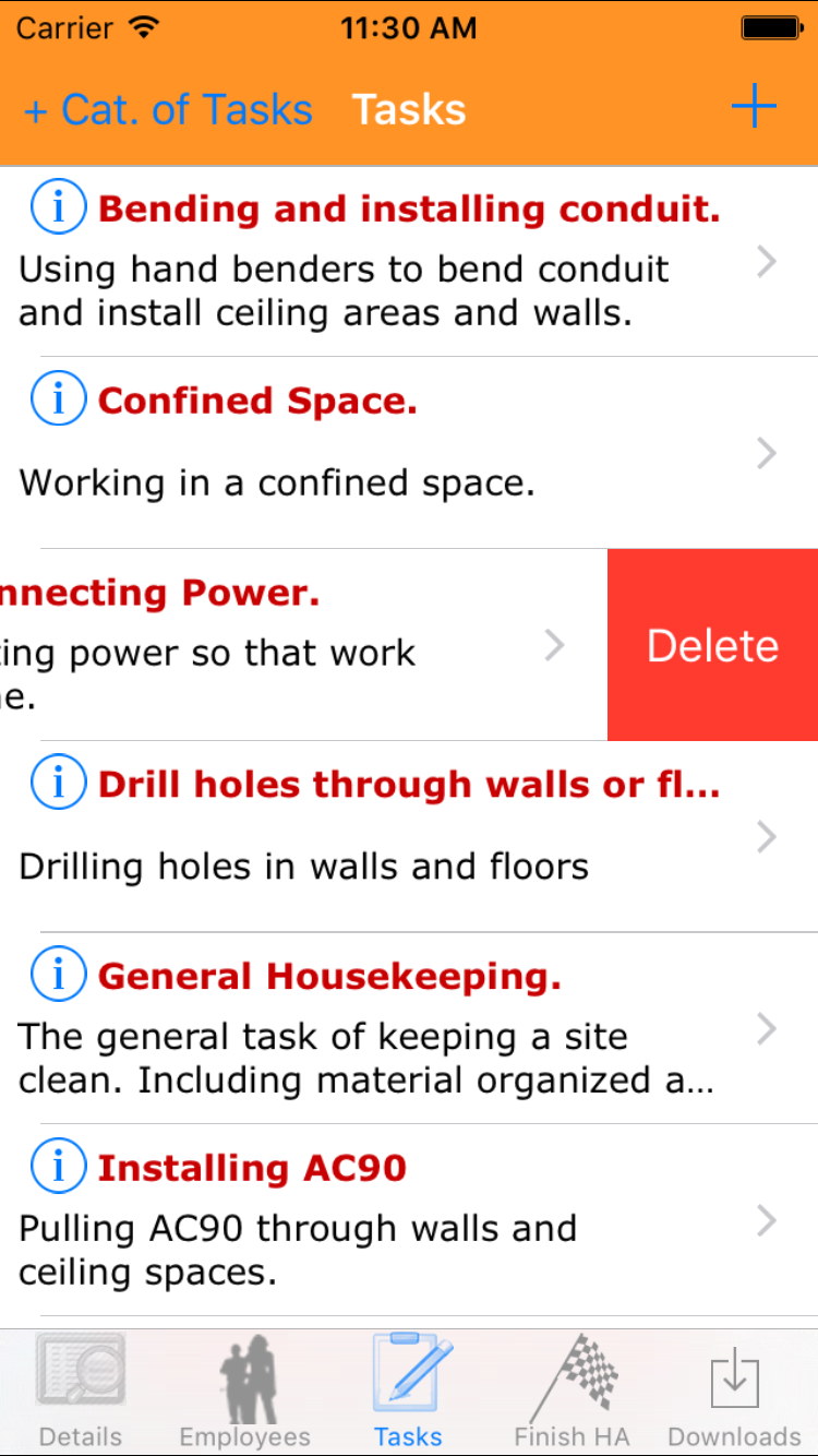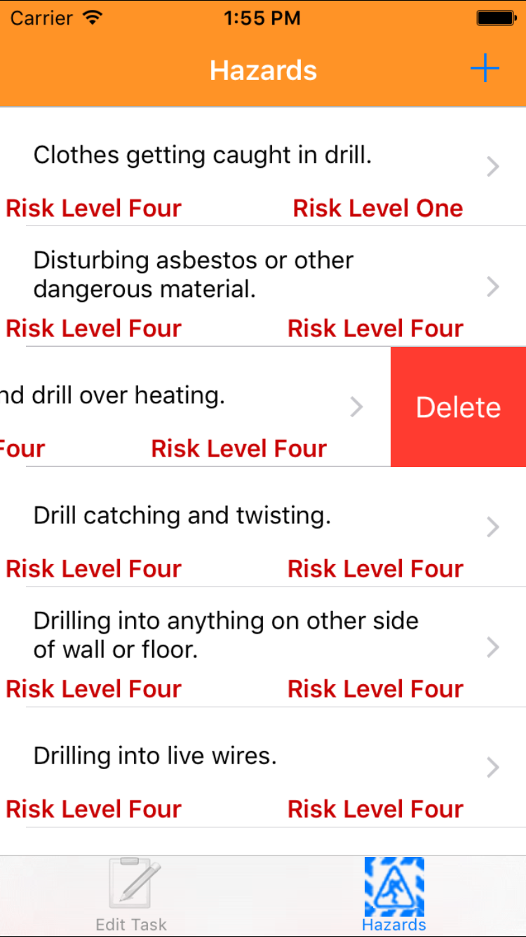 - Swipe from the right edge to the left to bring up the delete button for the task hazard.