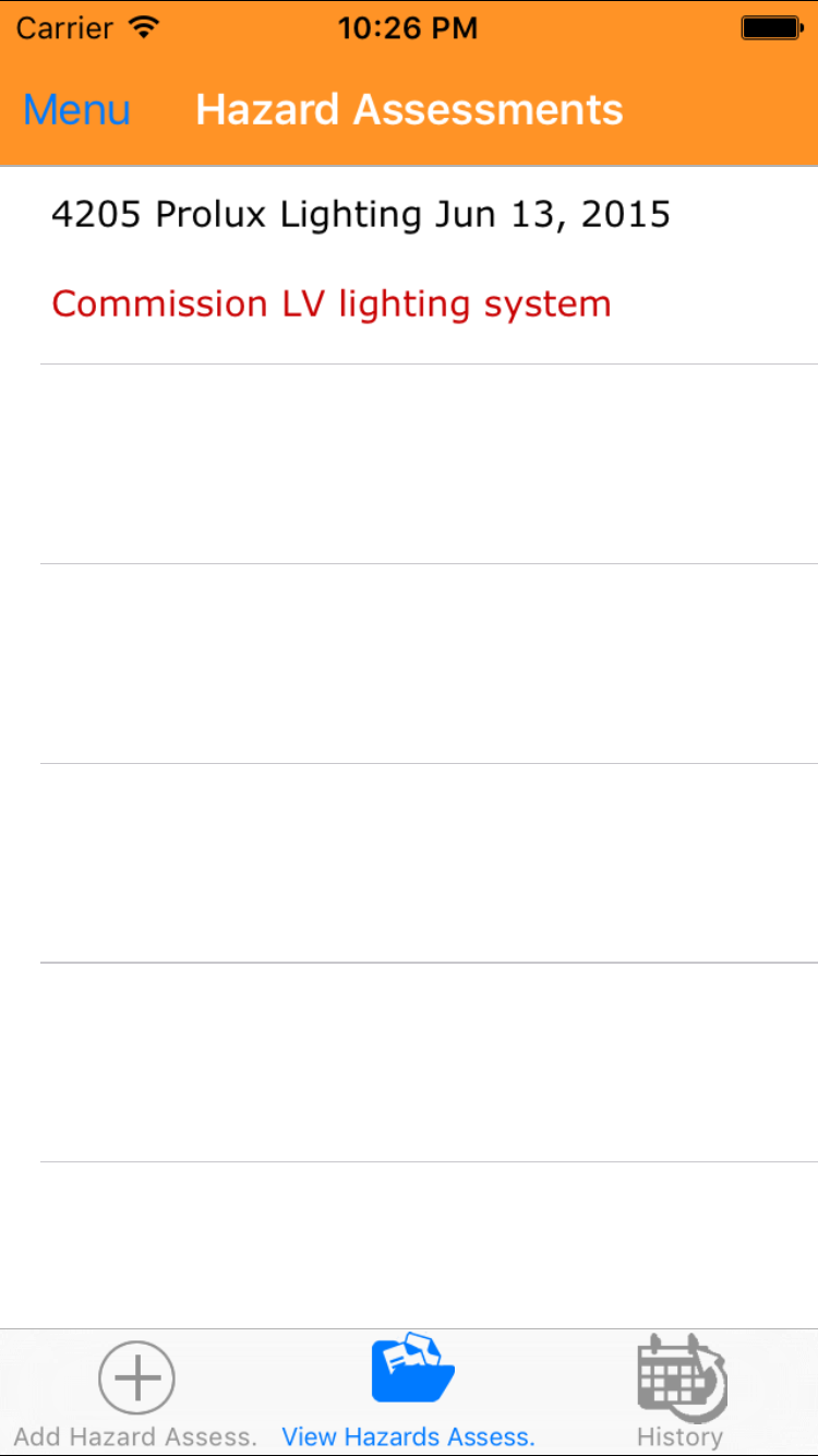 - Tap on the Hazard Assessment you would like to view. This loads the hazard assessment details.