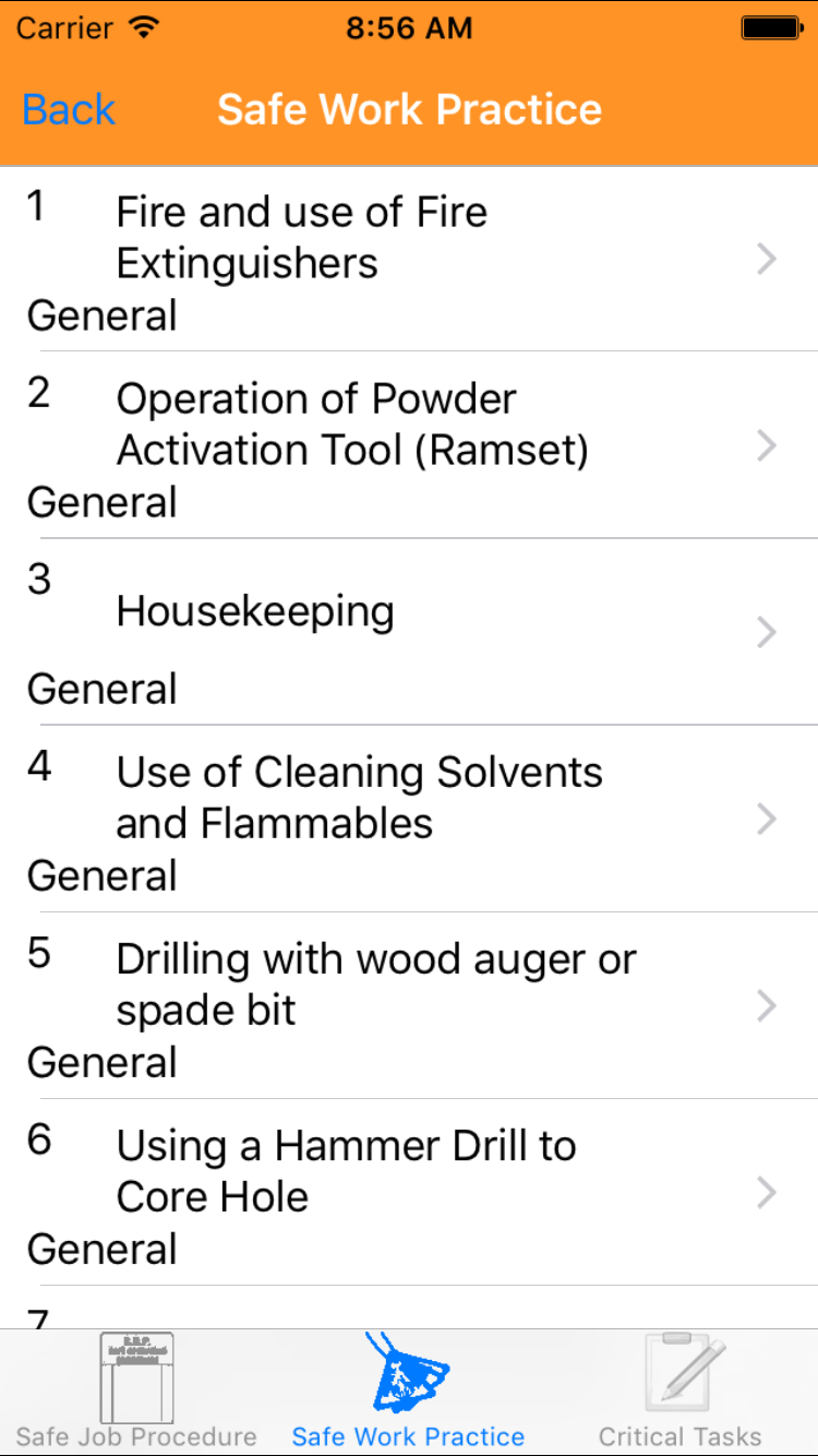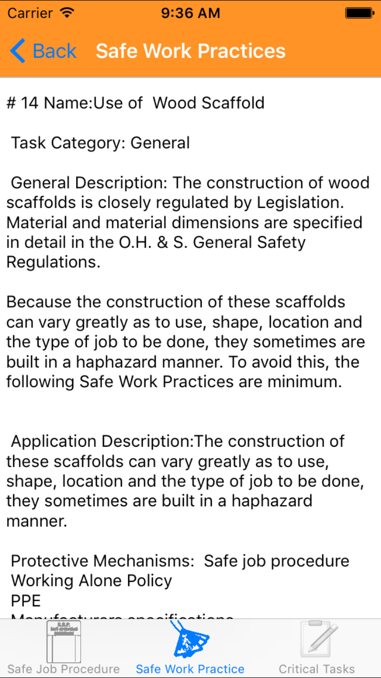 The safe work practice section in the IPhone application allows companies to give field staff access to the safe work practices of their safety program.