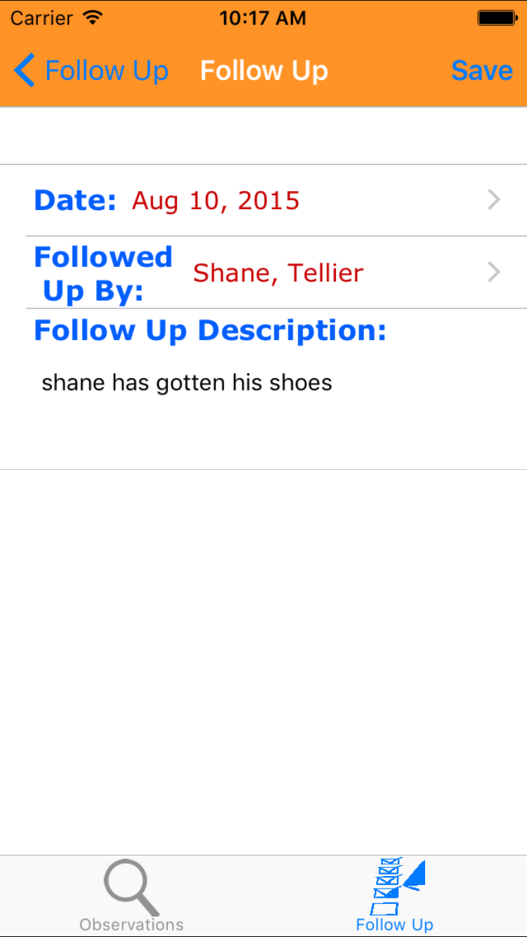 - Tap on the Follow Up you would like to view. This loads the follow up edit screen.