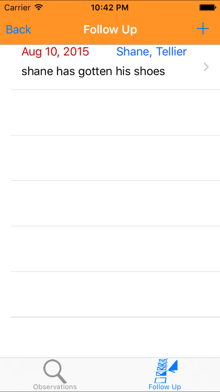 - Tap the fourth tab, the Observation tab of the History view. This loads with the observation tab, tapping on each observation will bring up the