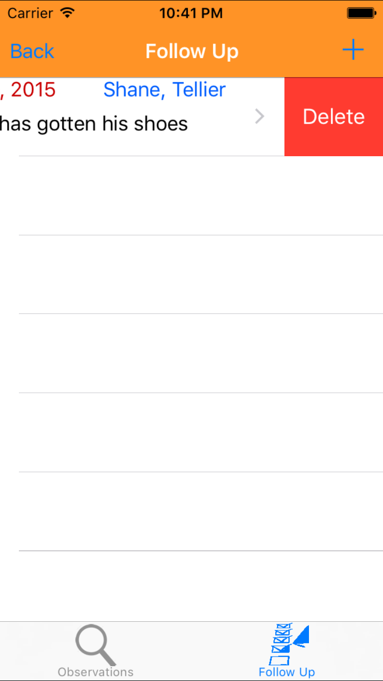 - Swipe from the right edge to the left to bring up the delete button for the observation.