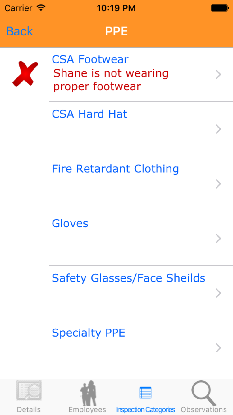 - Tap on the Safety Inspection you would like to view. This loads the safety inspection edit screen.