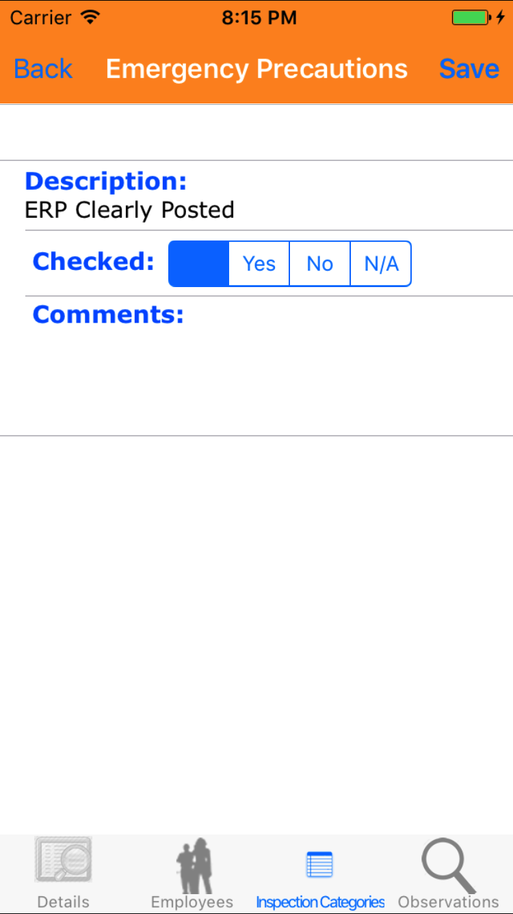 - Tap Save in the top right corner of the screen to save the safety inspection task details