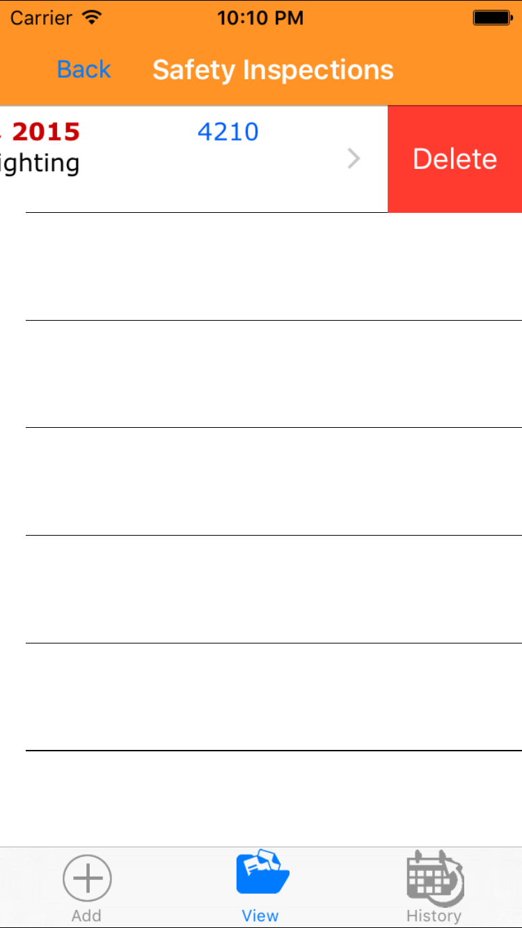 - Swipe from the right edge to the left to bring up the delete button for the safety inspection.