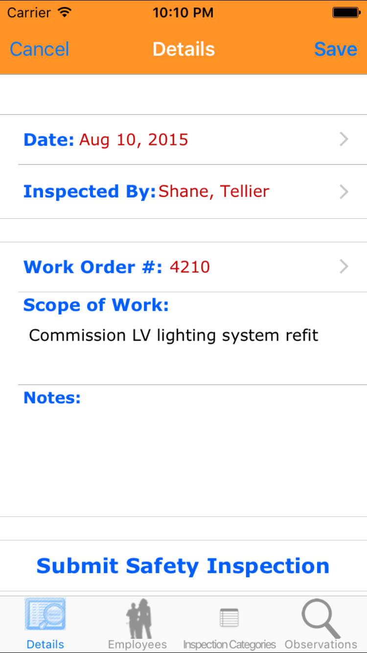 - Tap Save in the top right corner to save any changes to the Safety Inspection Details.
