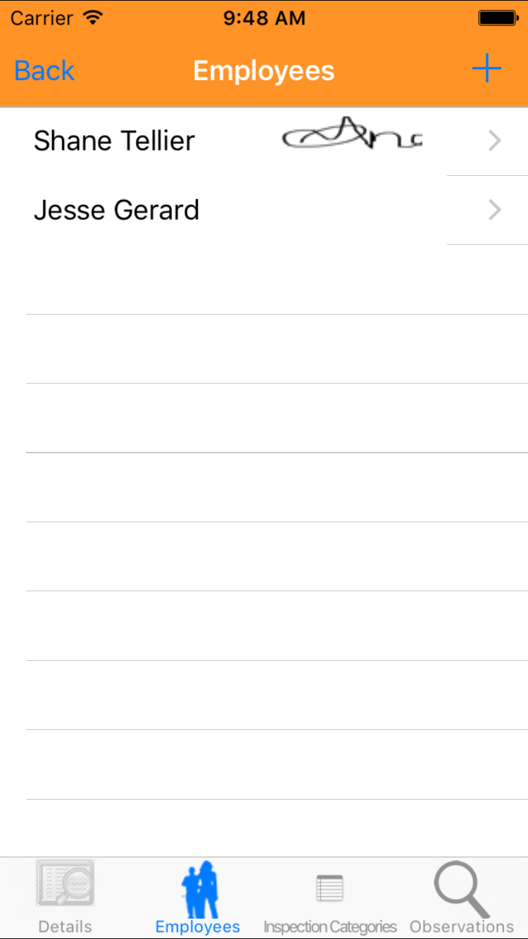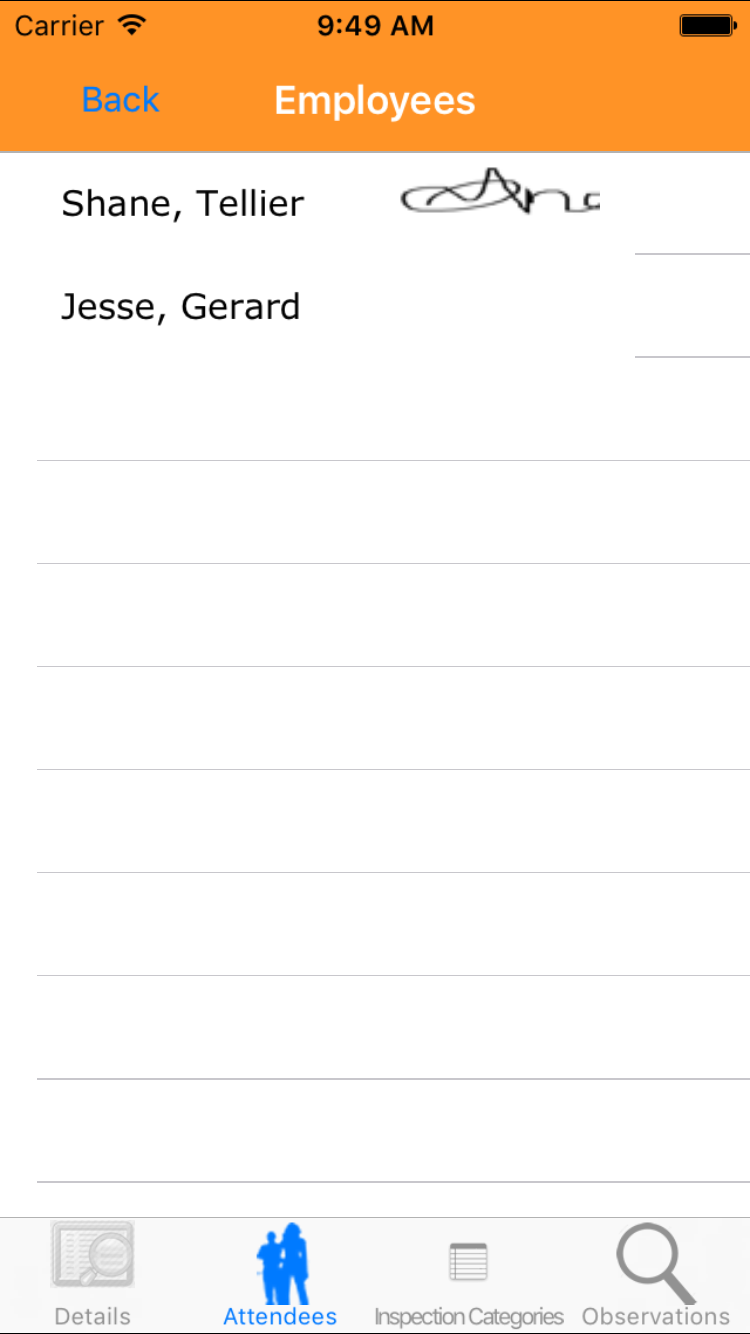 - Tap the second tab, the Employee’s tab of the History view. This loads with the employee’s names and their signatures