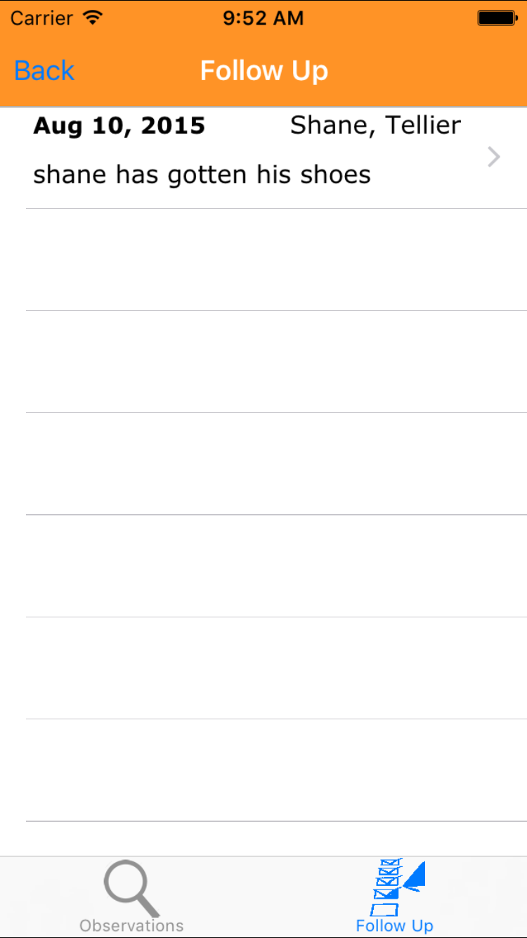 - Tap on the Observations you would like to view. This loads the observation edit screen.