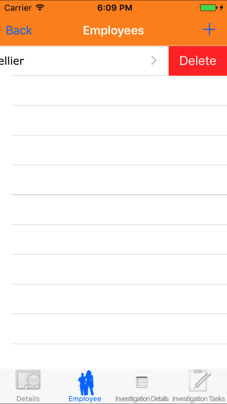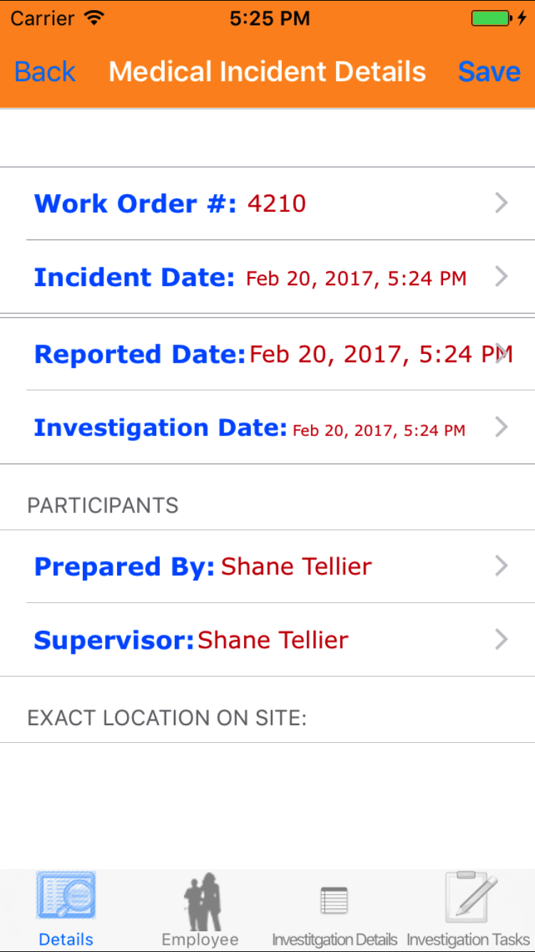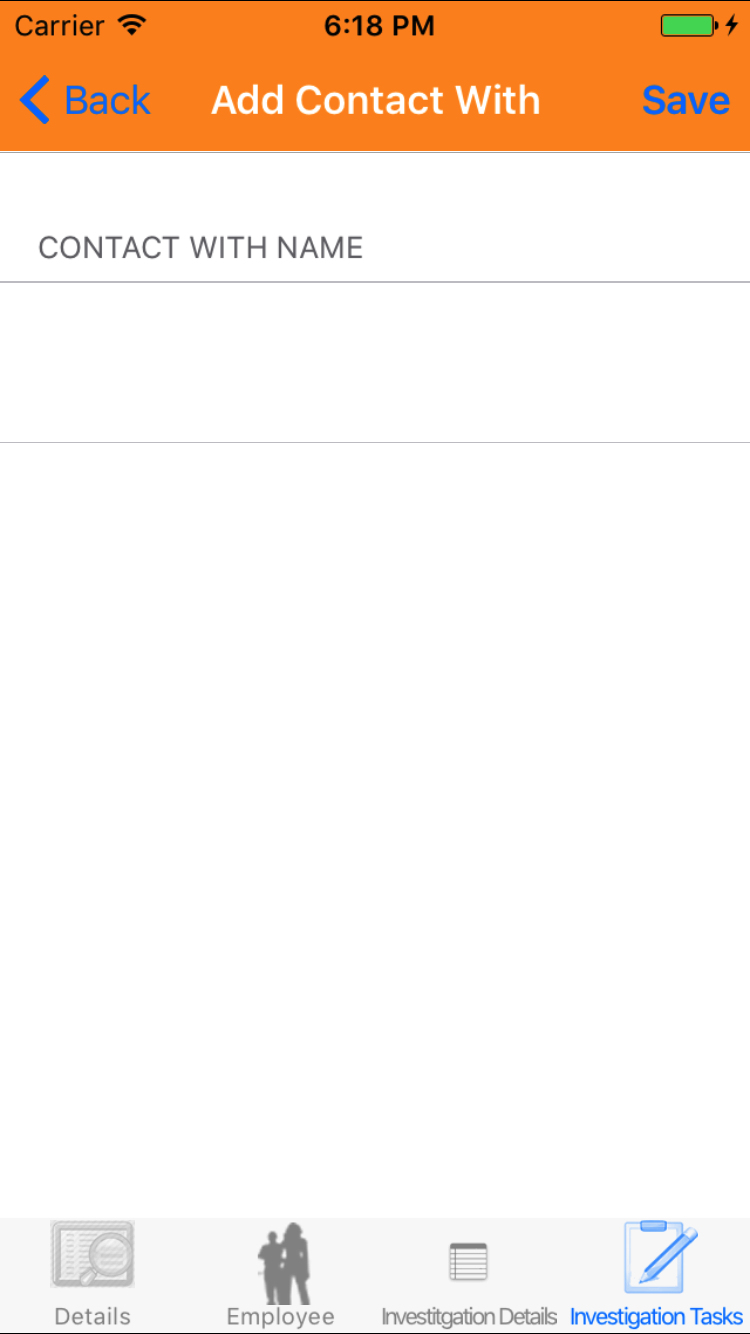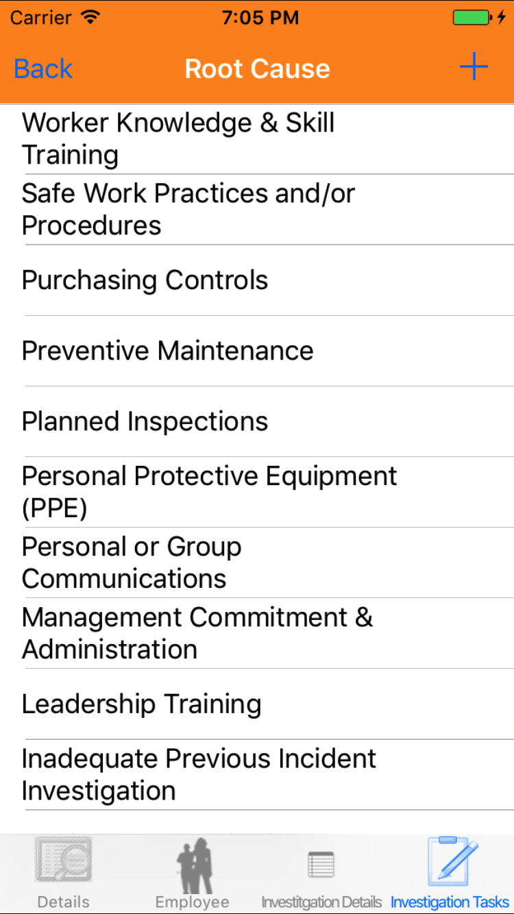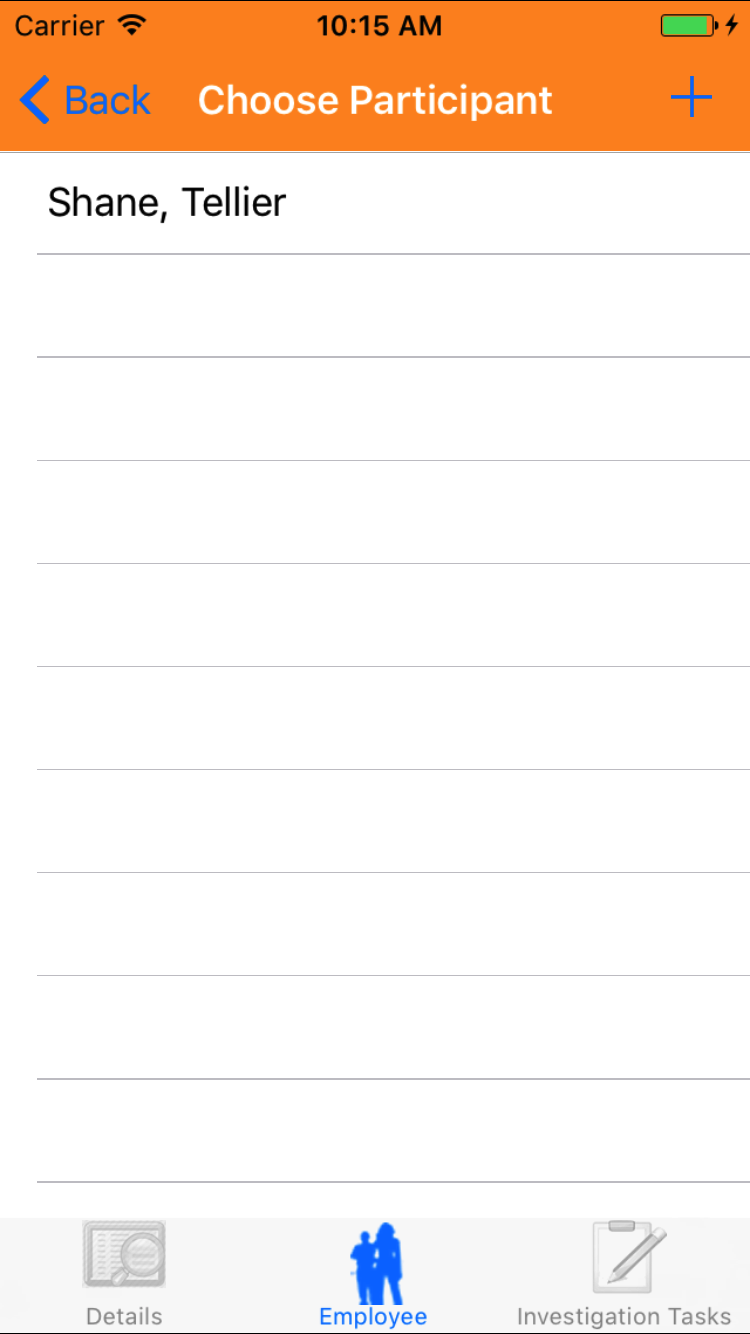- Tap the desired employee to select it or tap Back in the top left corner to leave the Employee field unchanged and return to the Edit Safety Investigation screen.