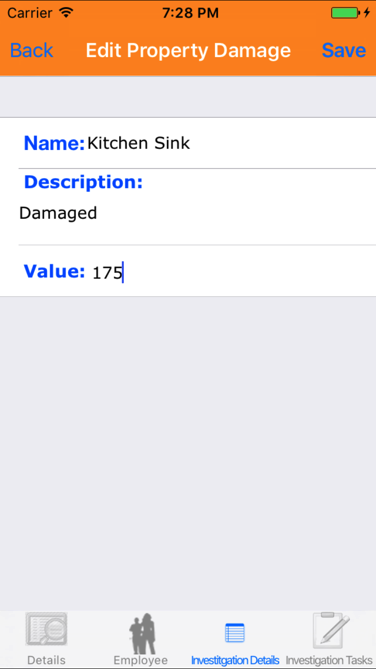 - Tap on the Property Damage you would like to view. This loads the property damage edit screen.