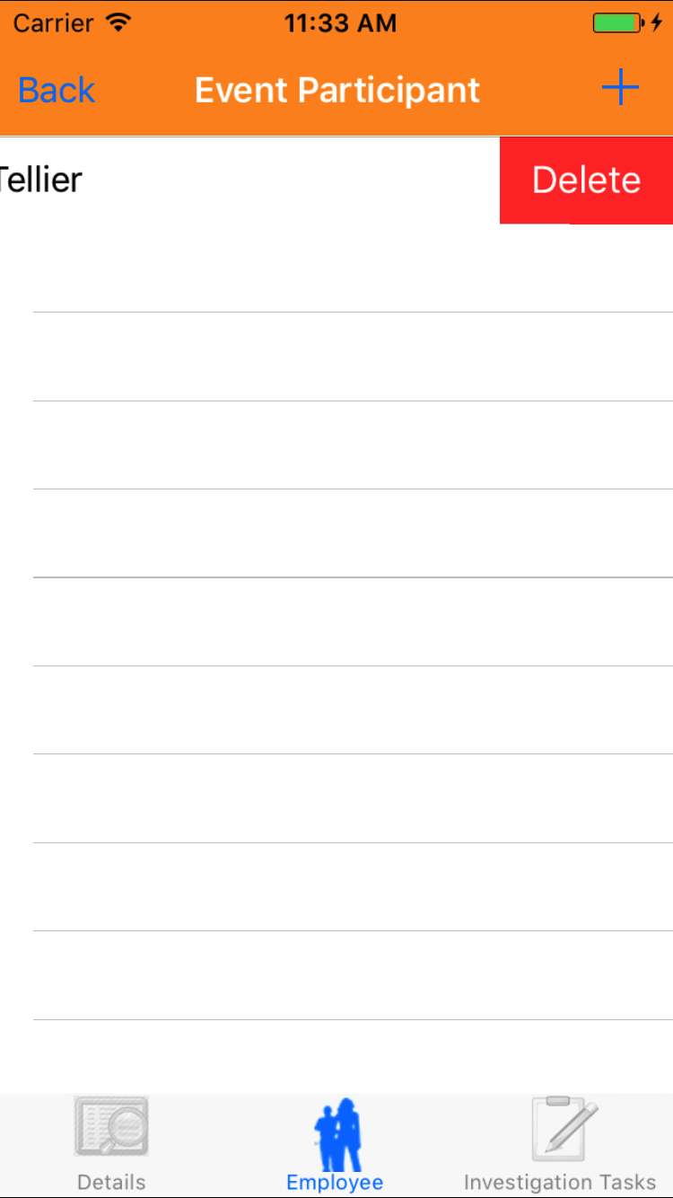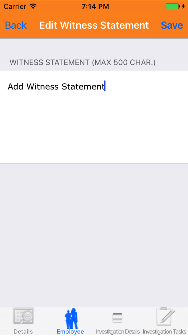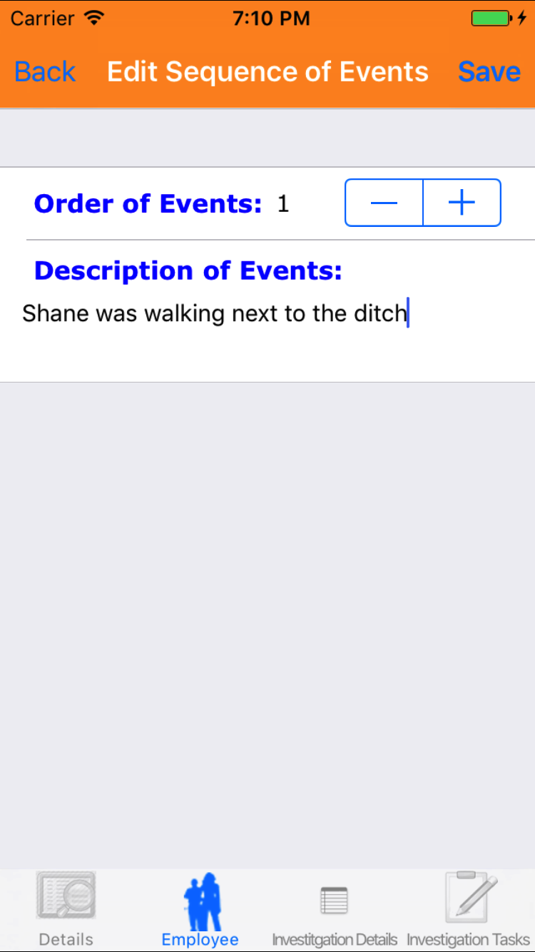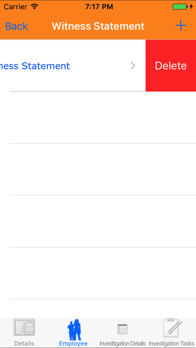 - Tap the Employee icon, the second tab. This opens the list of Employees, Sequence of Events, and Witness Statement.