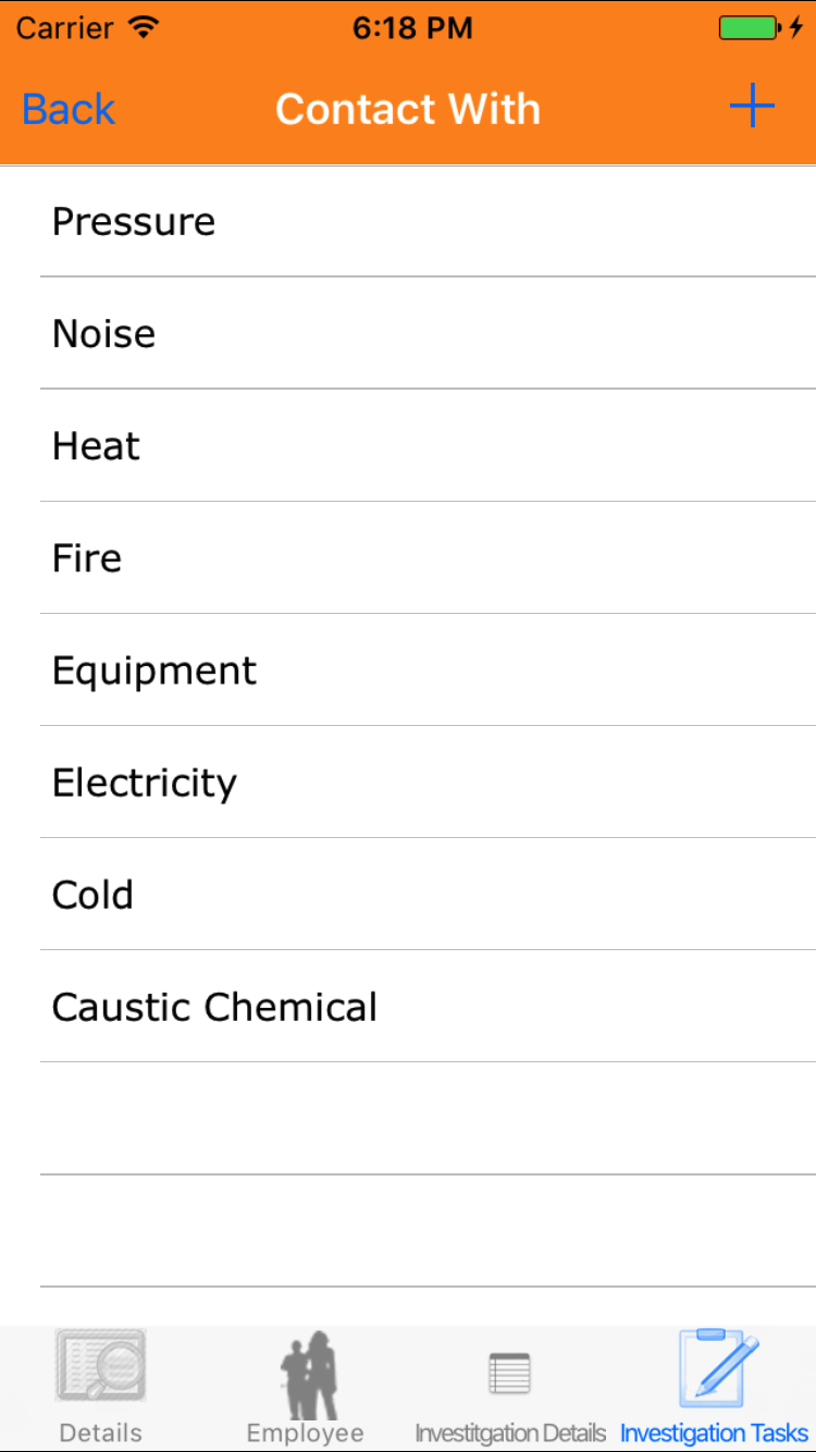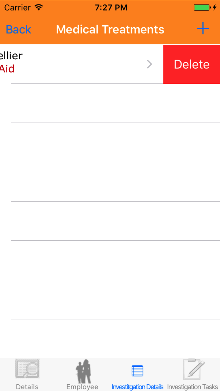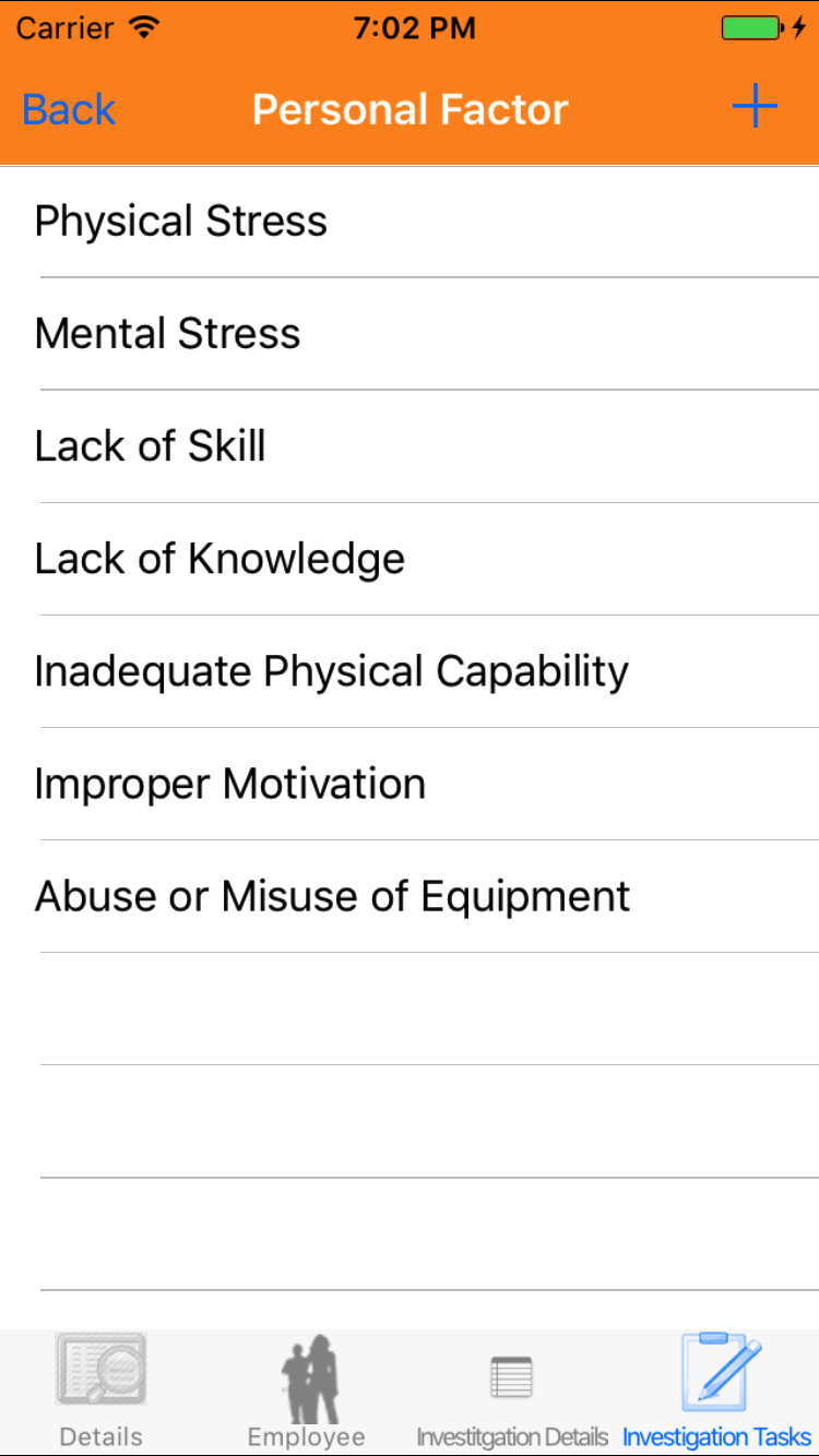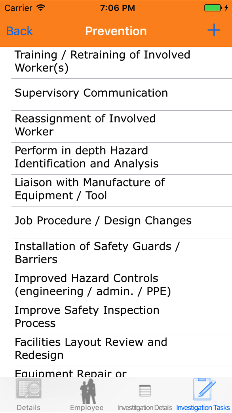 - Tap the + icon in the top right corner to add the Safety Investigation.