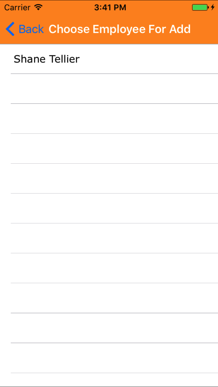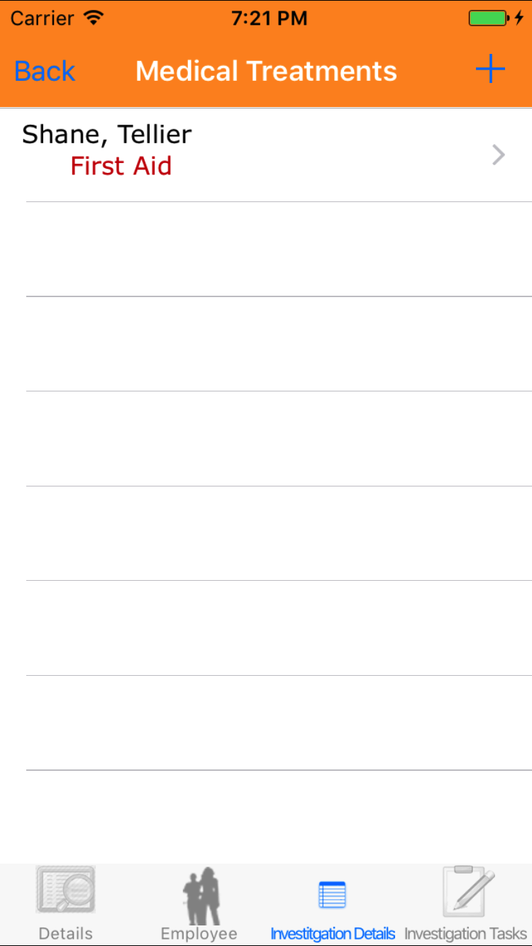 - Tap the desired employee to select it or tap Back in the top left corner to leave the Employee field unchanged and return to the Add Medical Treatment screen.