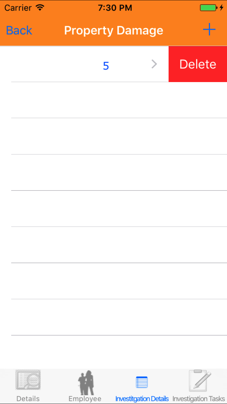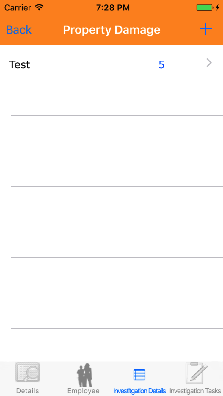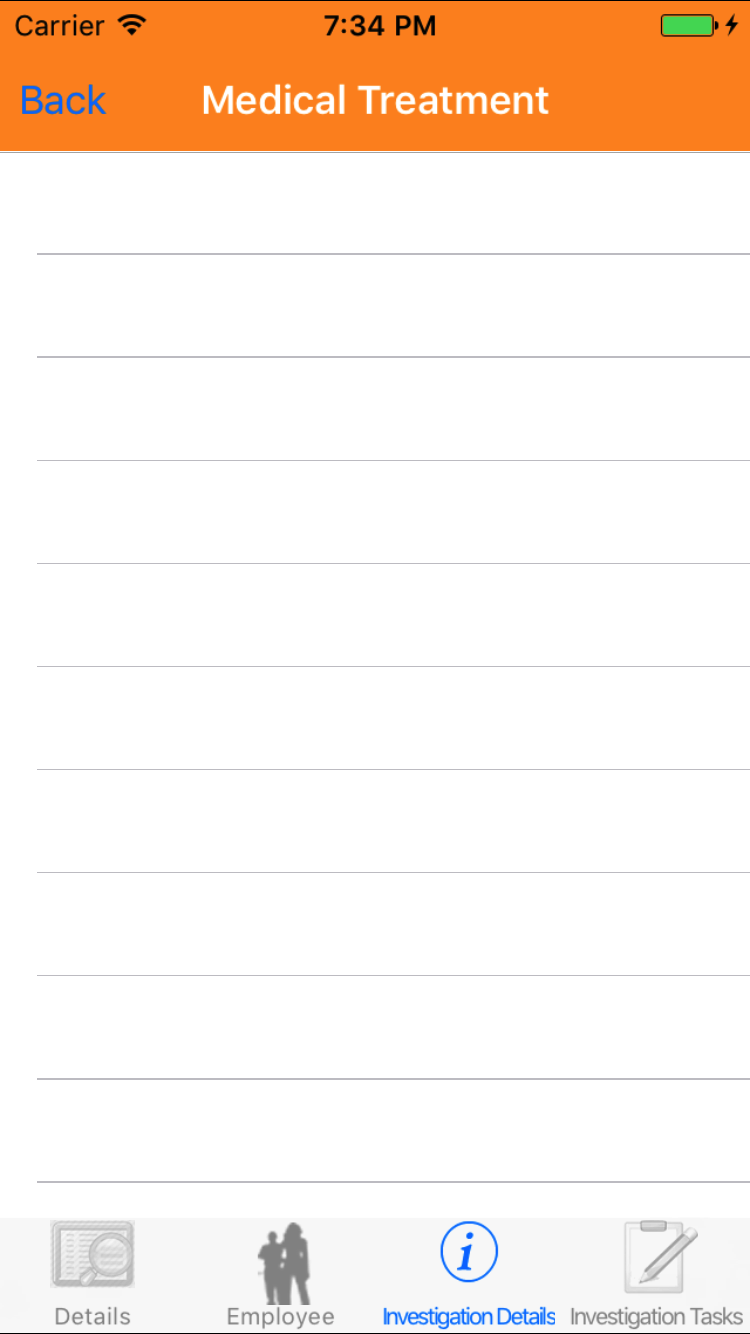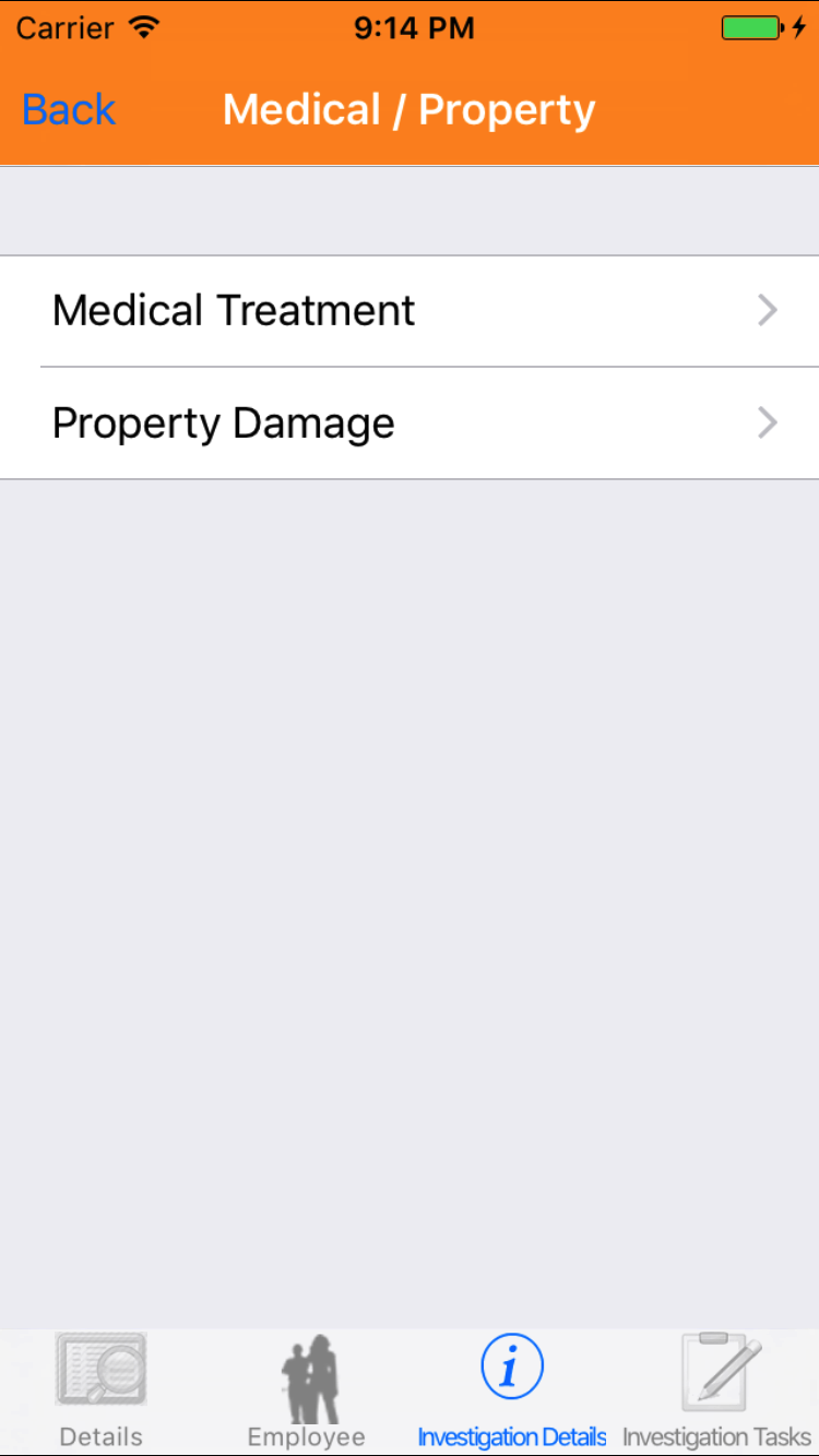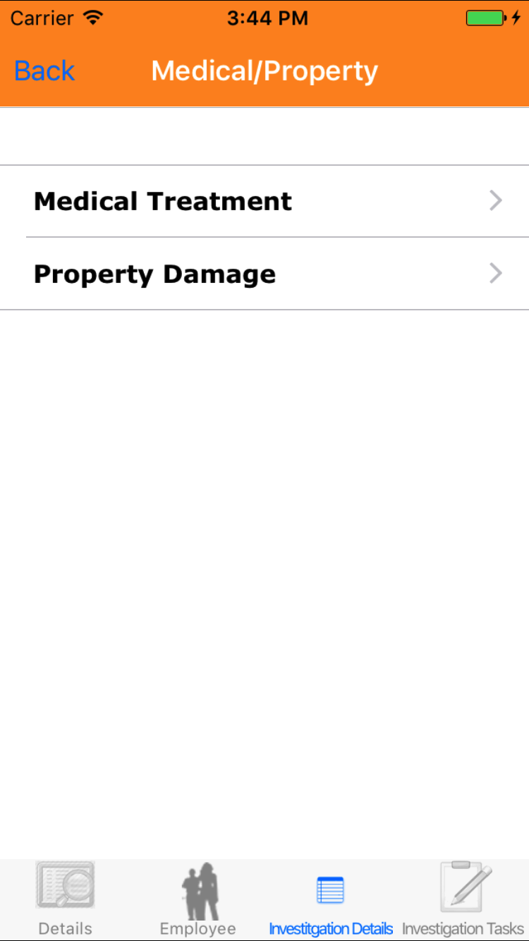 - Tap the Investigation Details icon, the third tab. This opens the list of Medical Treatment or Property Damage