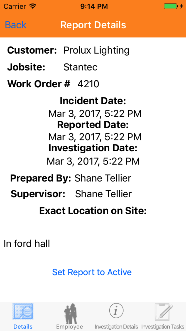 - Injured Employee: The injured employee field initialy displays the name of the person who added the Safety Investigation and should be updated to indicate the employee who was injured.