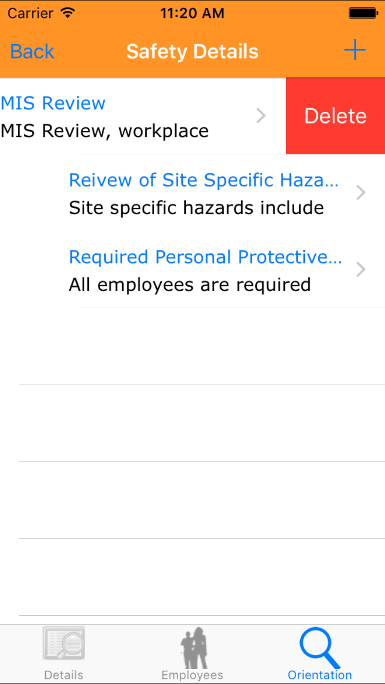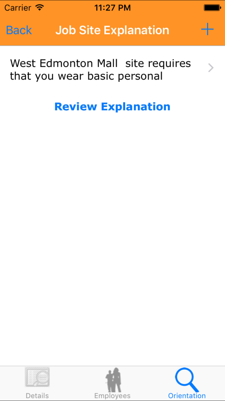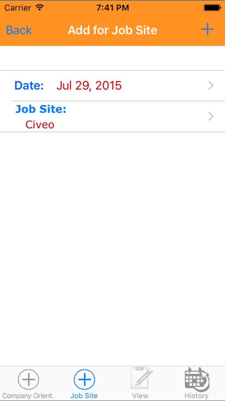 - Then tap on the second tab on the bottom of the screen, this opens the Add Site Orientation For Job Site entry screen.
