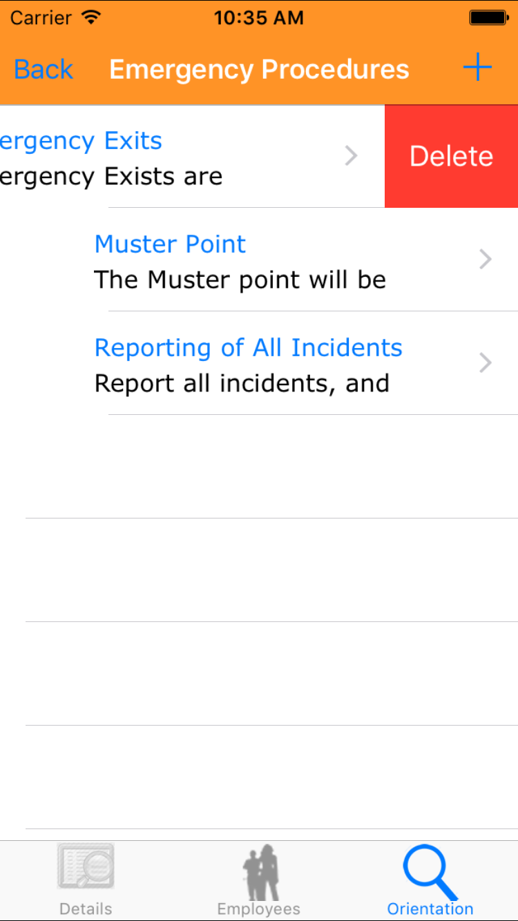 - Swipe from the right edge to the left to bring up the delete button for the emergency response procedure paragraph.