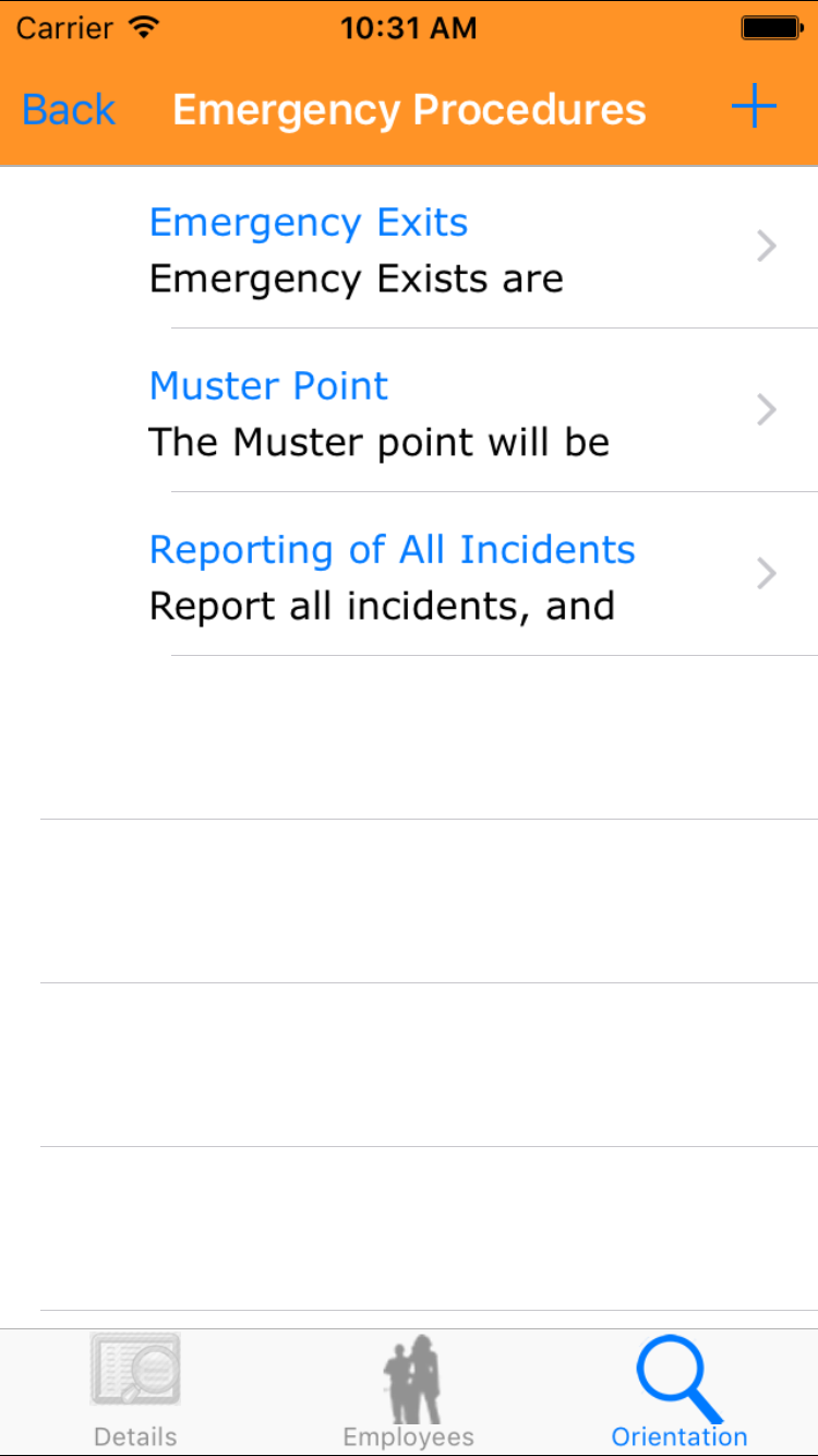- Tap the Add button on the top right corner, to add the a emergency response procedure paragraph.